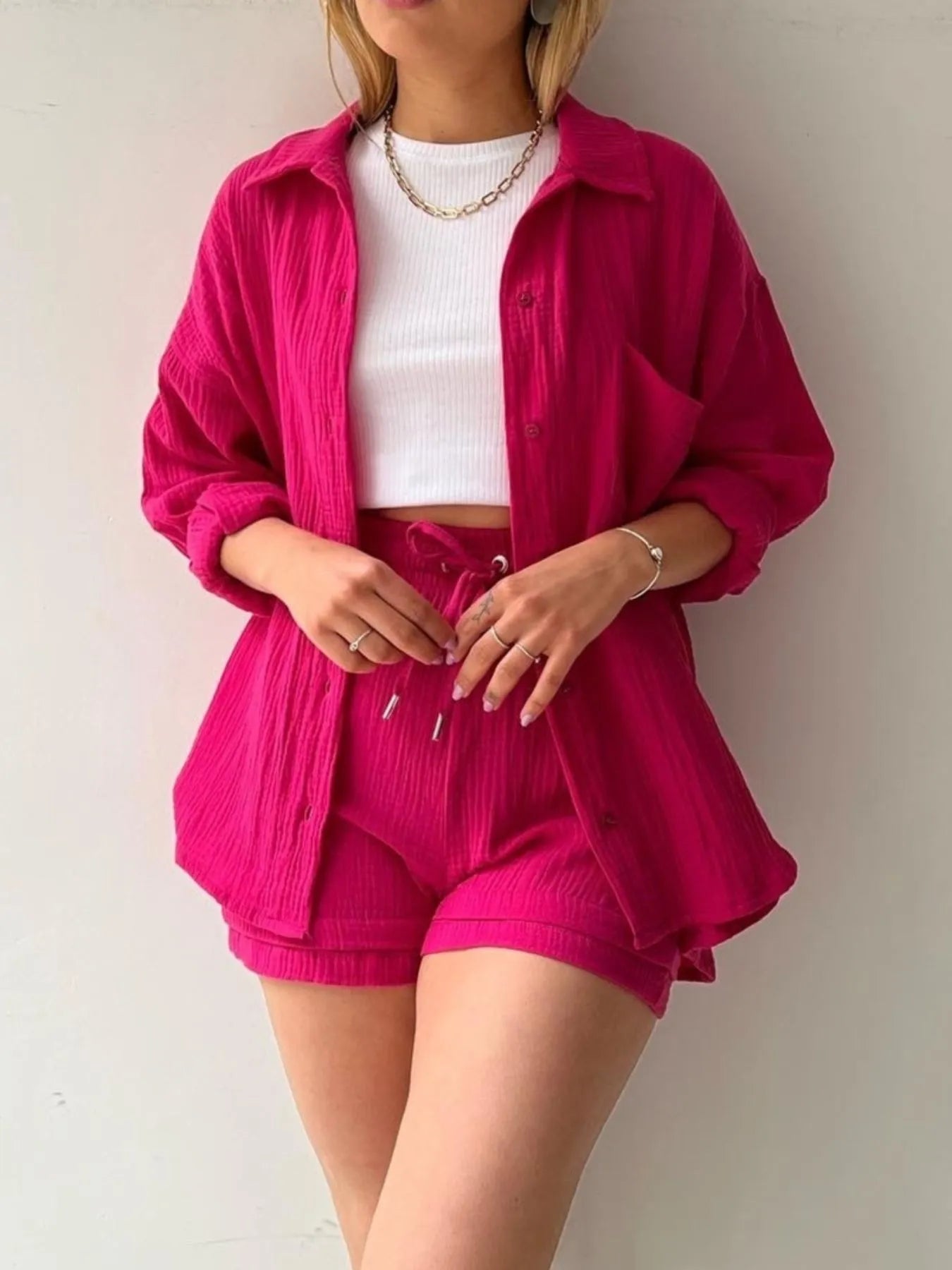 Button Up Shirt and Shorts Set