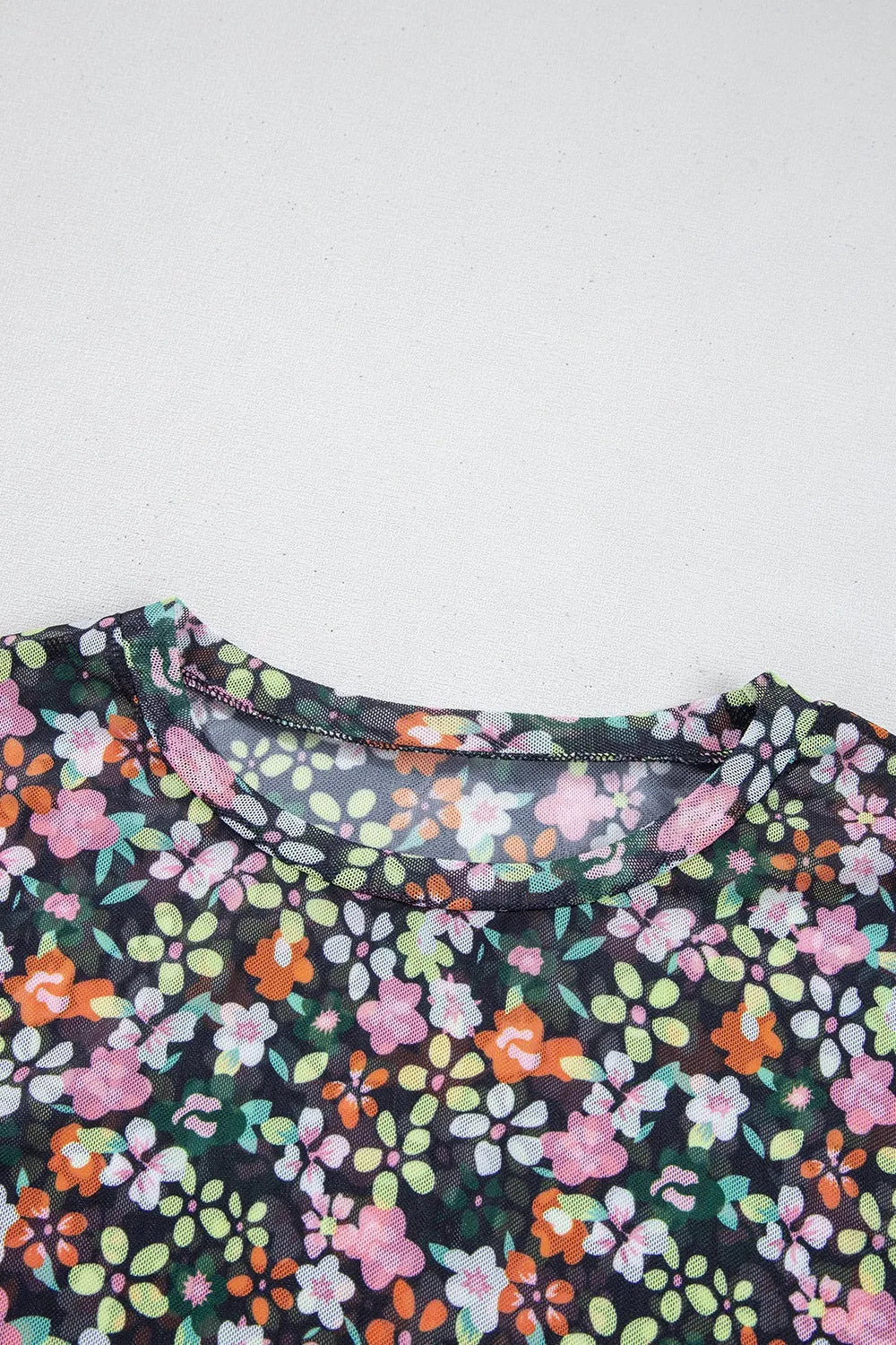 Cami and Sheer Floral Mesh Round Neck Top Set