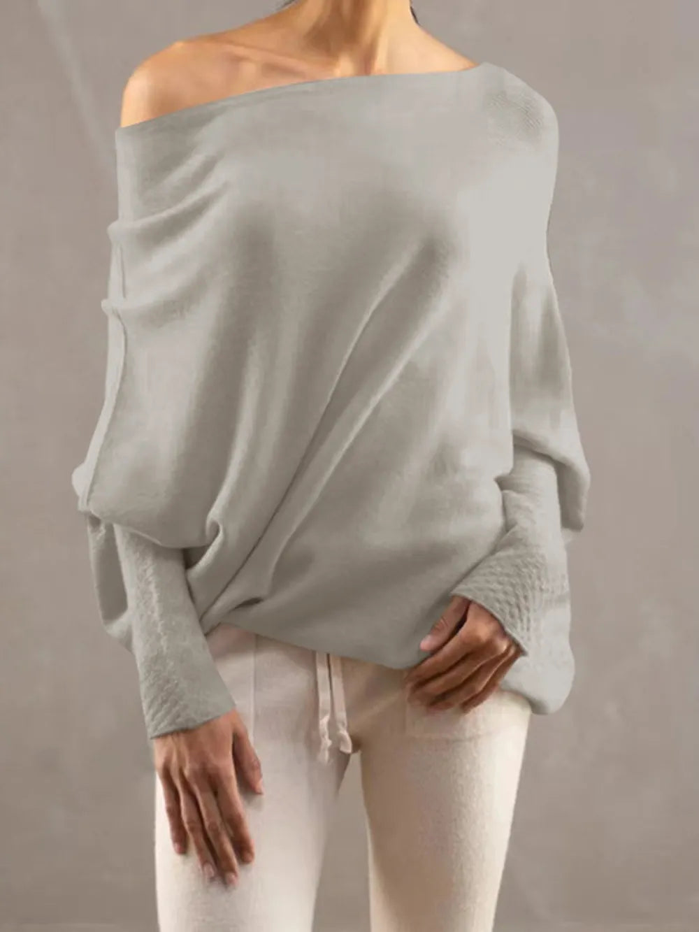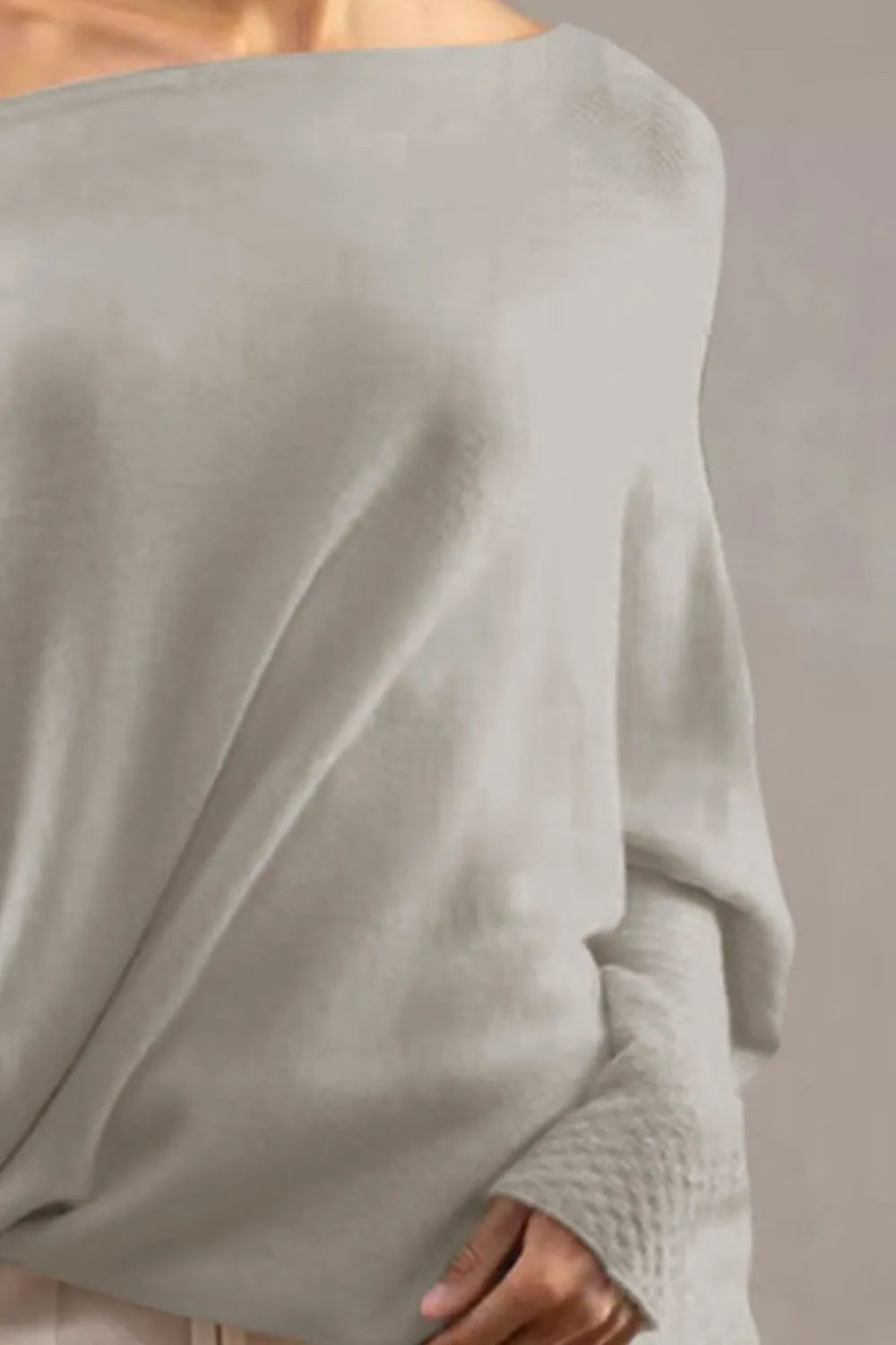Full Size Boat Neck Batwing Sleeve Knit Top
