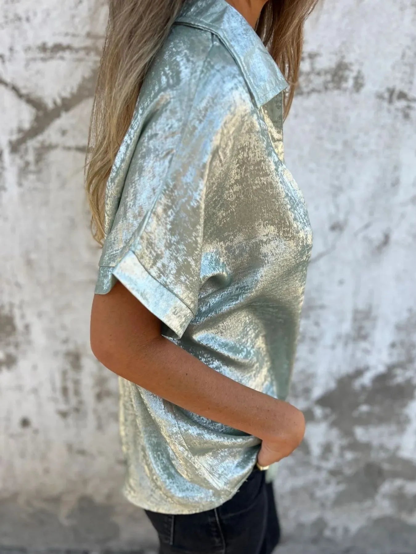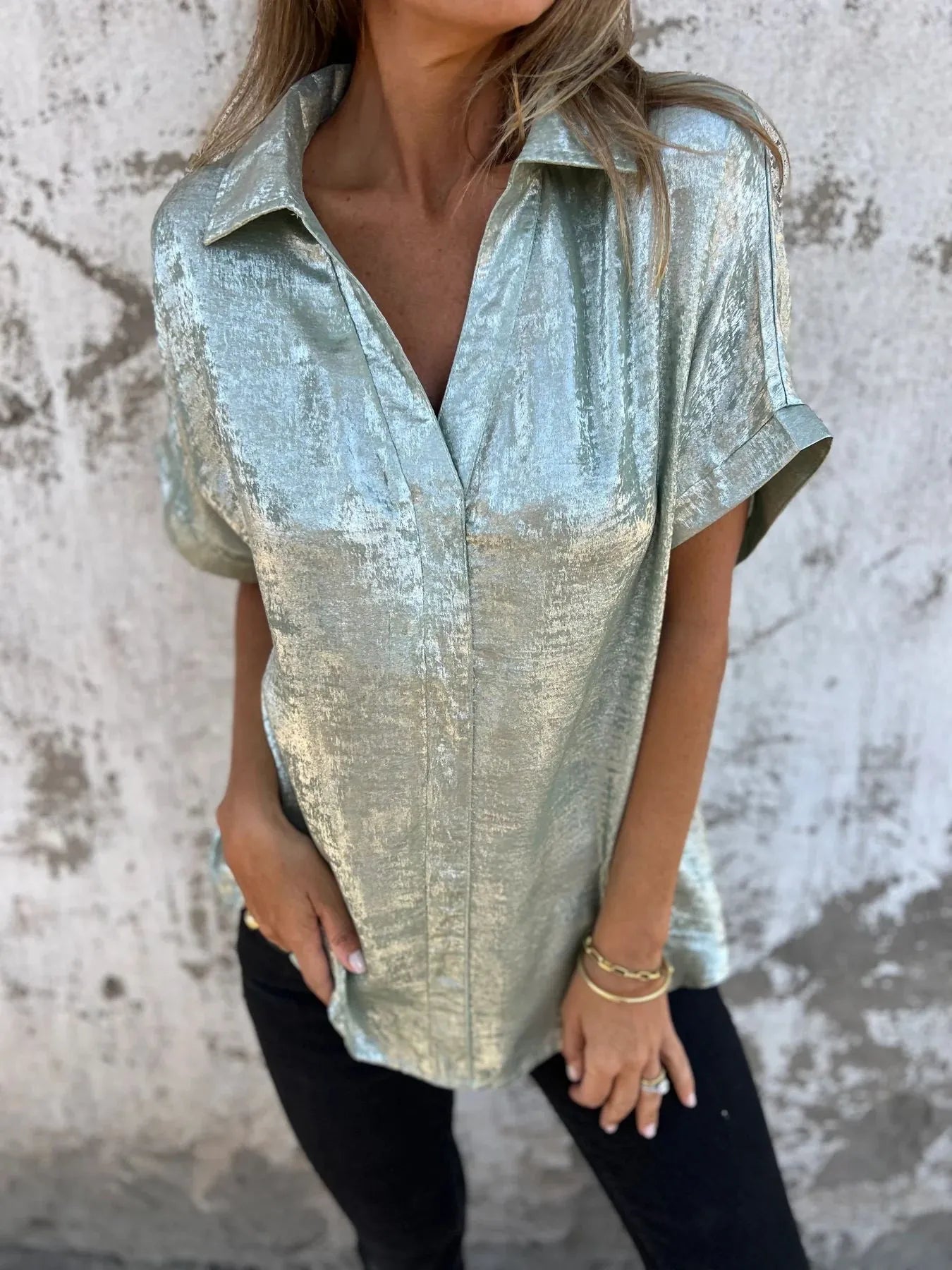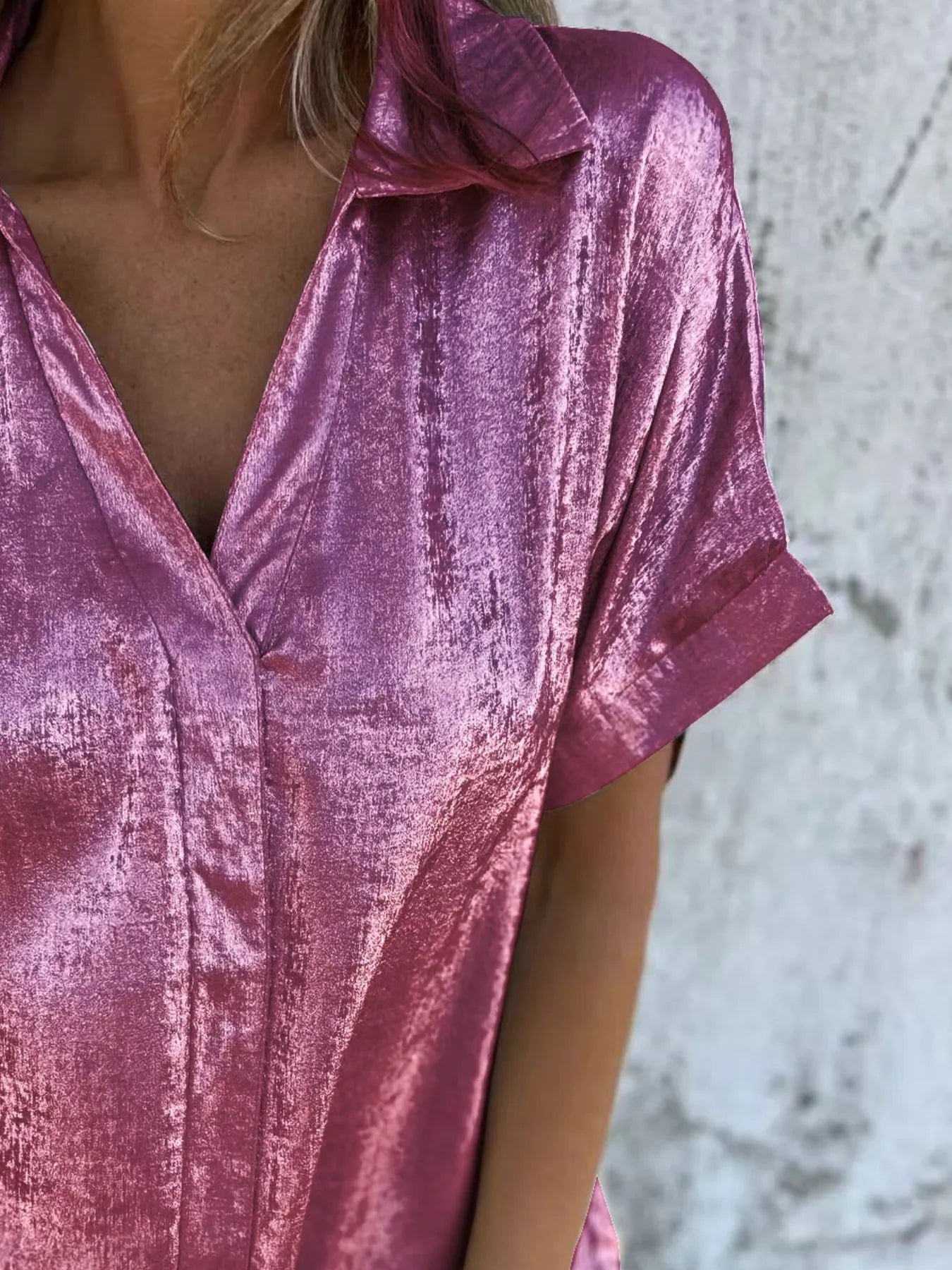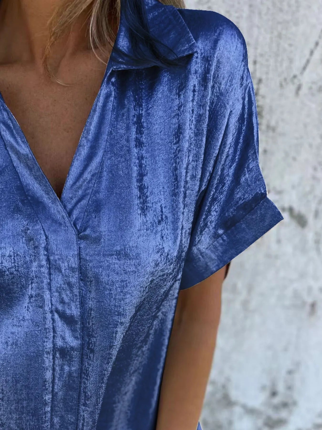 Full Size Collared Neck Short Sleeve Shirt Plus Size