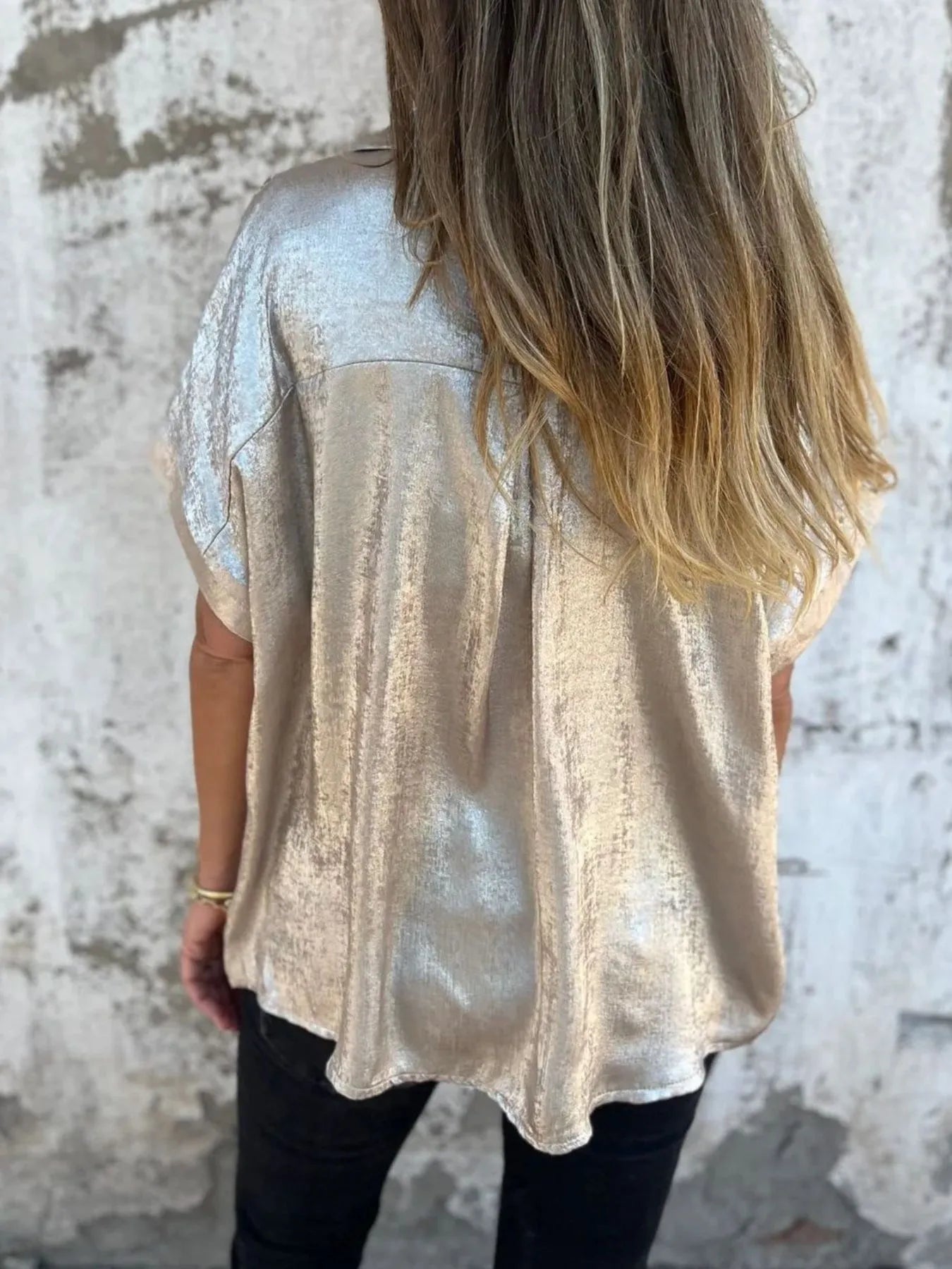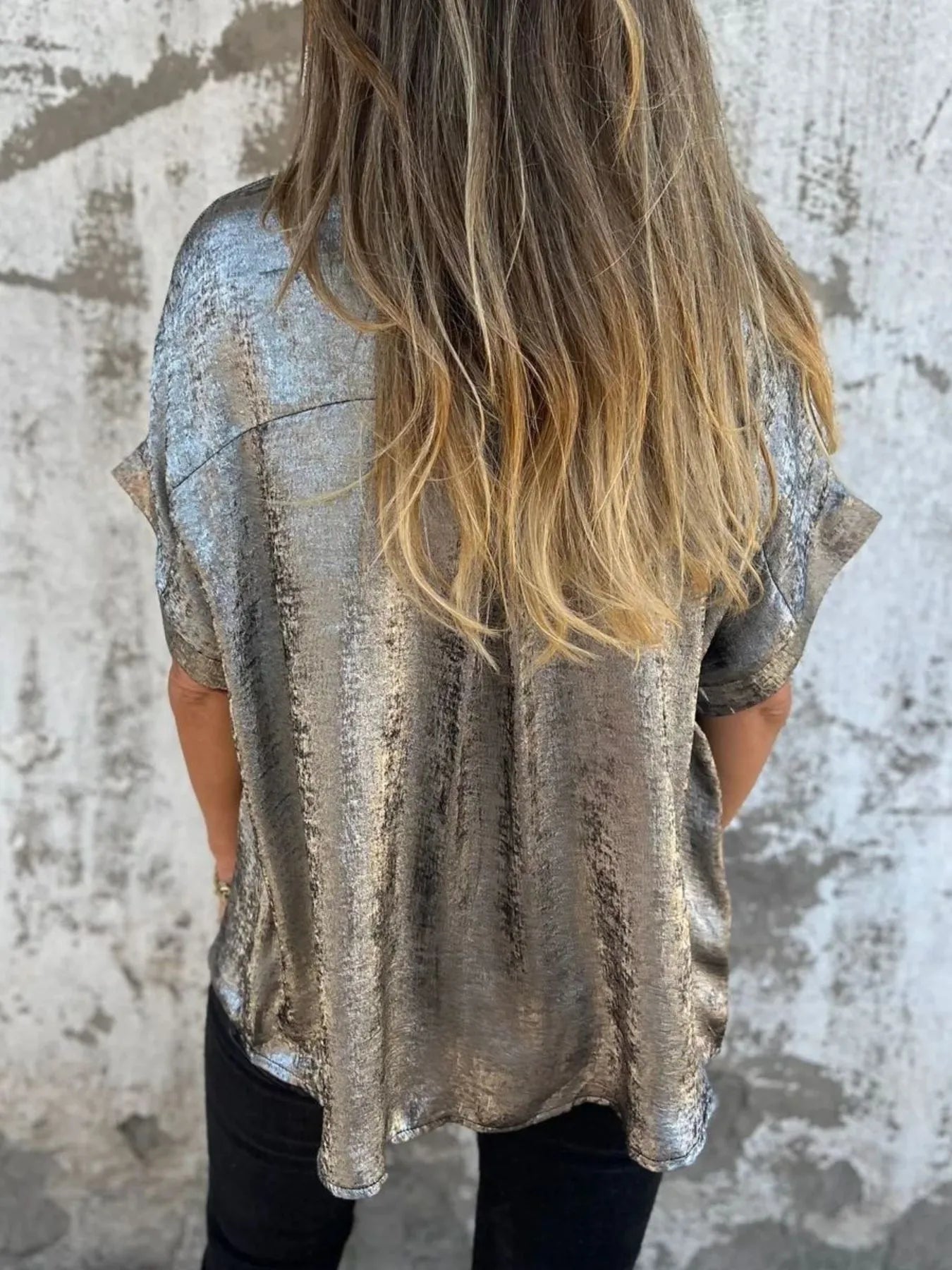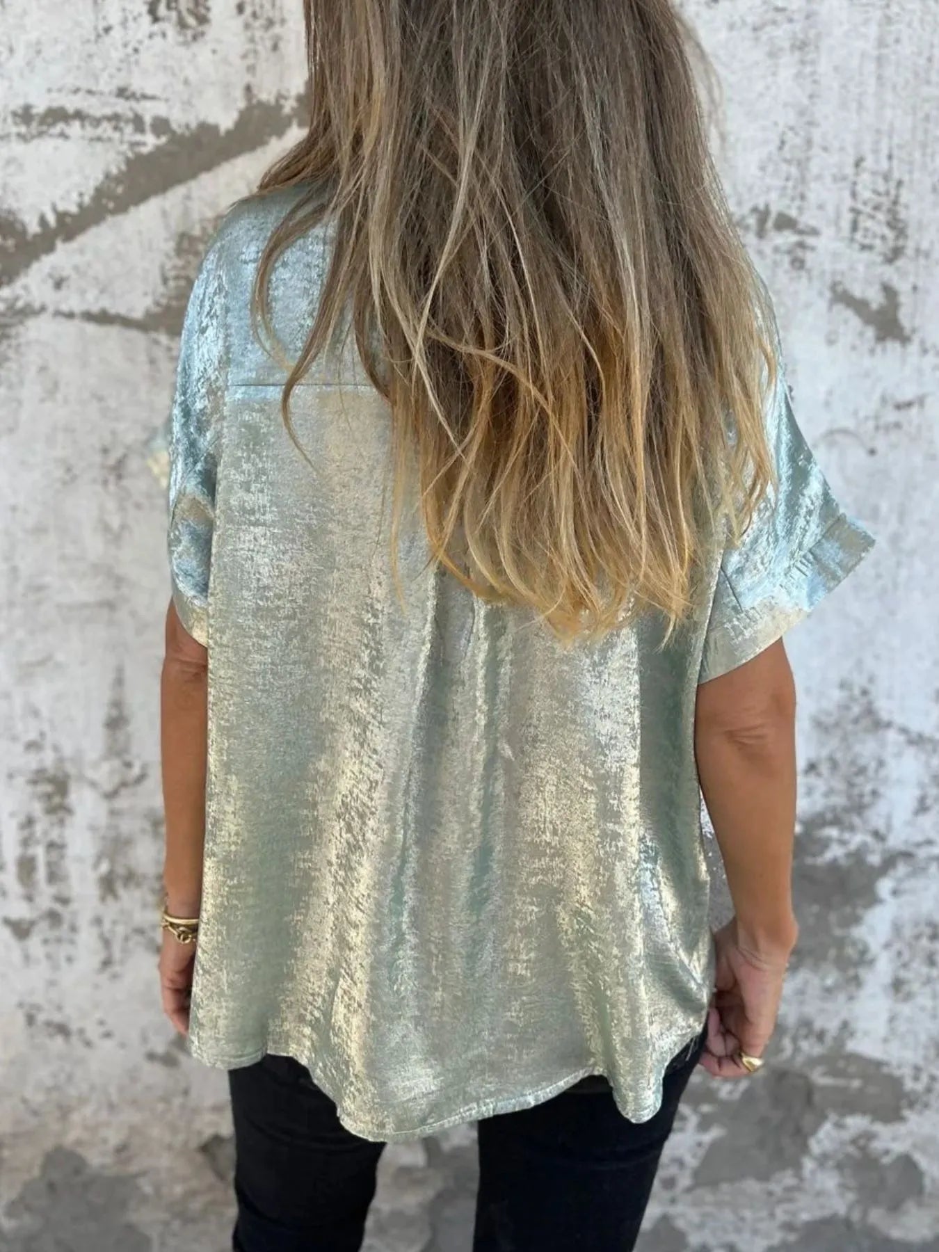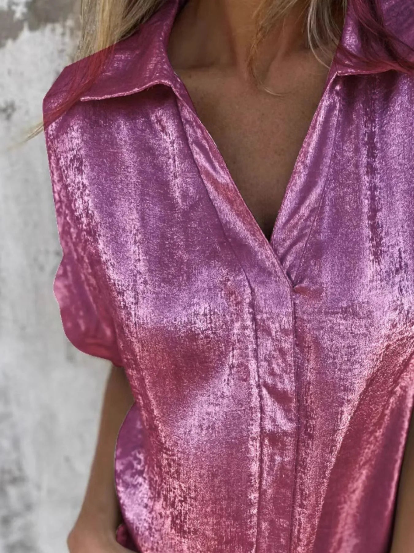 Full Size Collared Neck Short Sleeve Shirt Plus Size