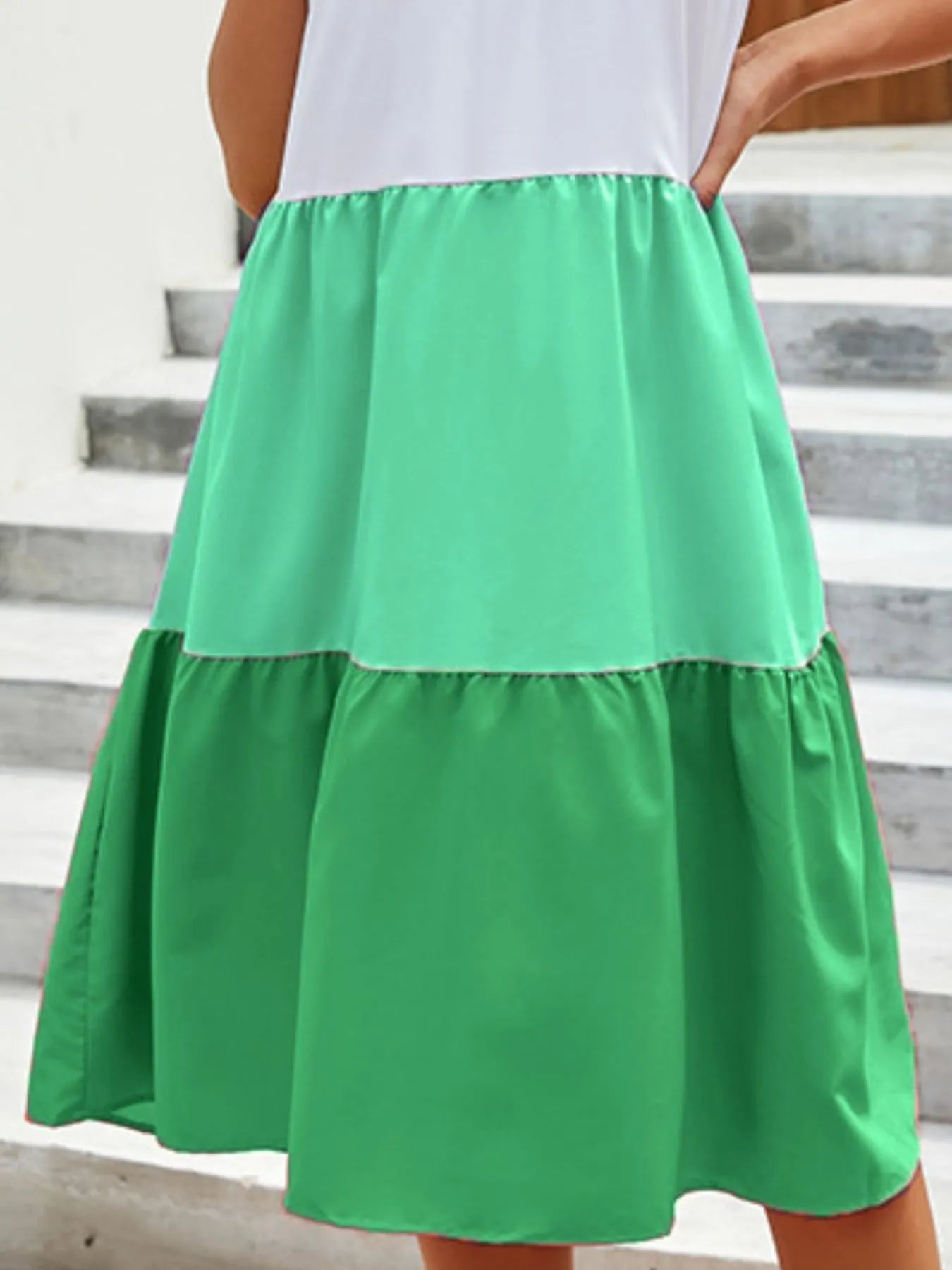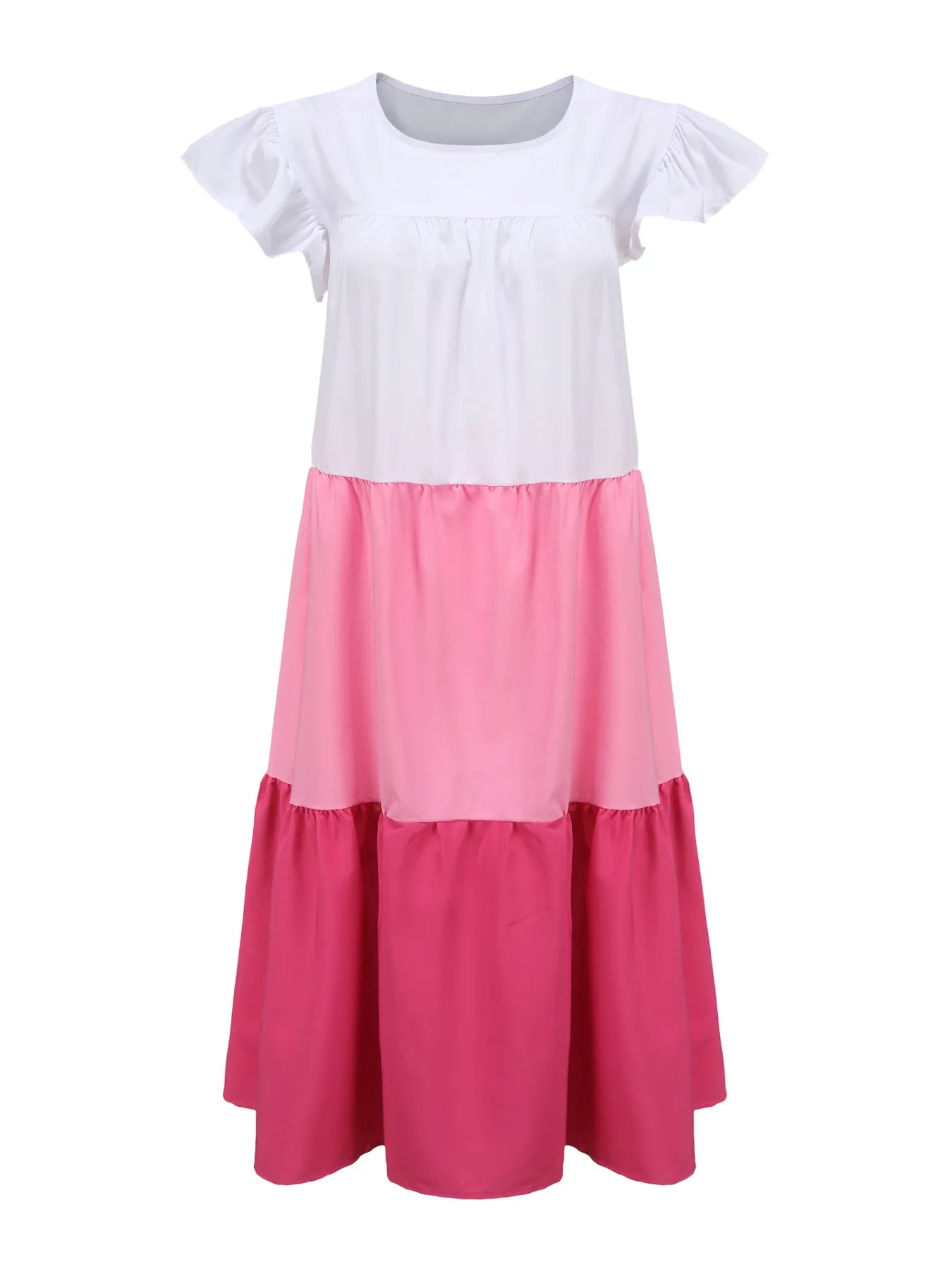 Designed with thoughtful attention to fit, the Full Size Color Block Tiered Ruffle Summer Dress features a silhouette that flatters without constriction. The slightly stretchy fabric accommodates natural curves beautifully, while the tiered layers create an elegant volume that dances with every step. Its shoulder measurement and bust sizing are carefully tailored to offer a confident fit that embraces your figure, without ever feeling restrictive.