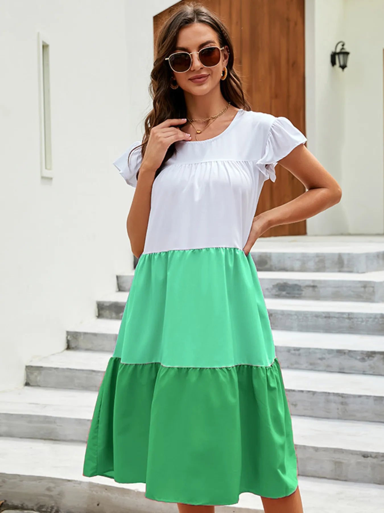 This dress is more than just a summer essential—it’s a celebration of your unique style, crafted to make you feel radiant and poised. The tiered ruffles create a lively rhythm that moves with you, while the color block design ensures you stand out with effortless chic. Its comfortable stretch fabric and expertly considered fit mean you can embrace every moment with confidence and grace.