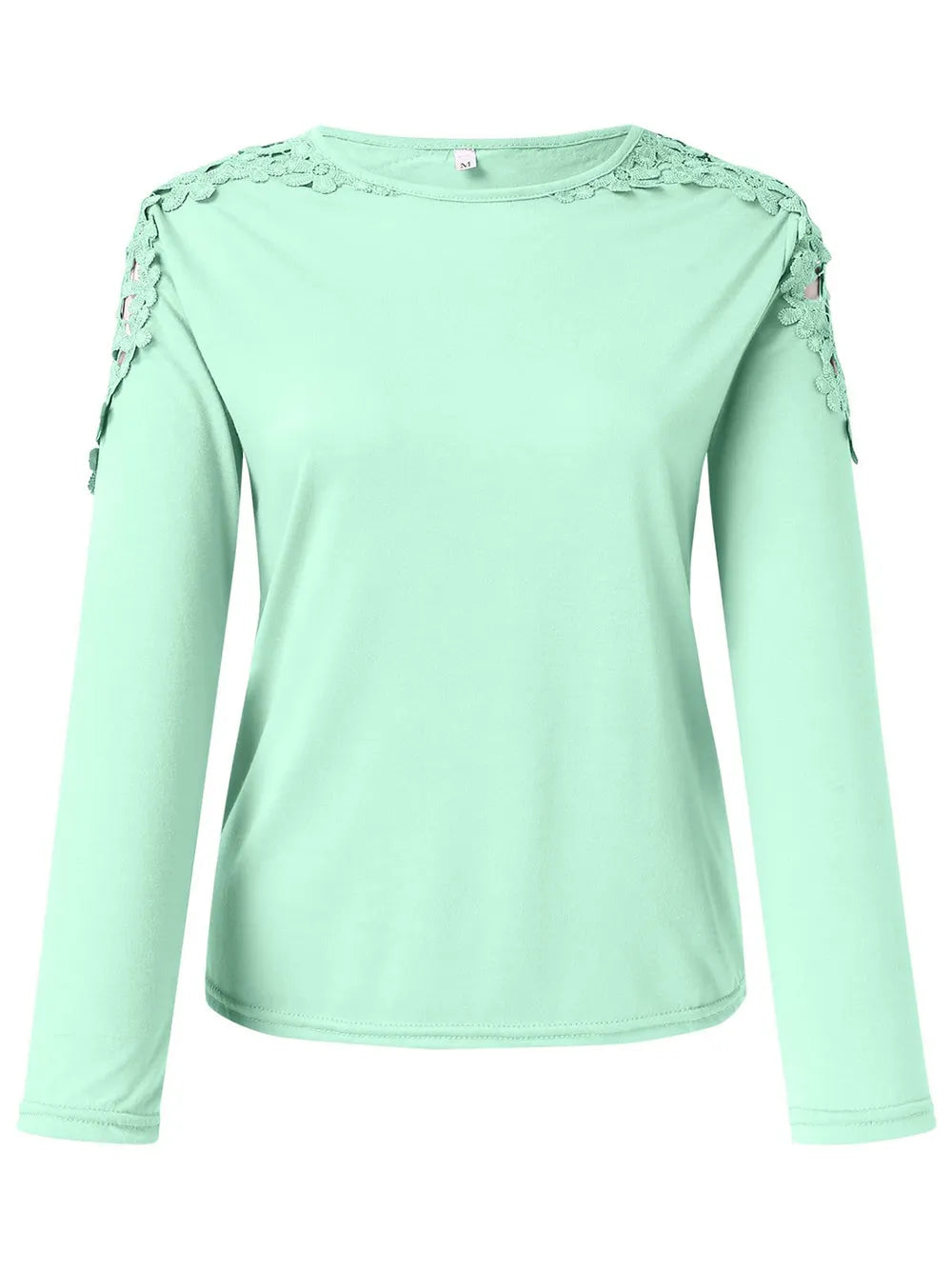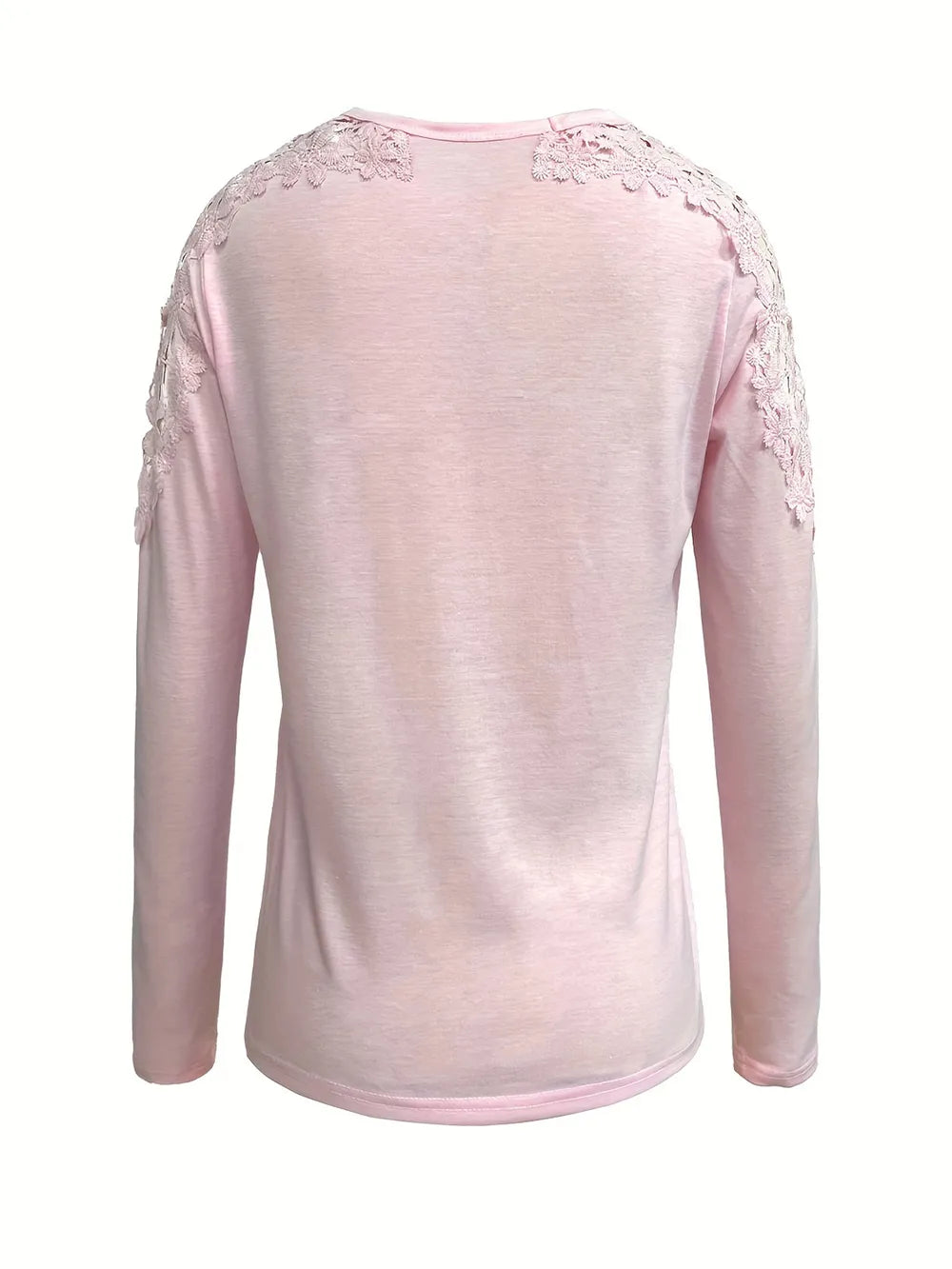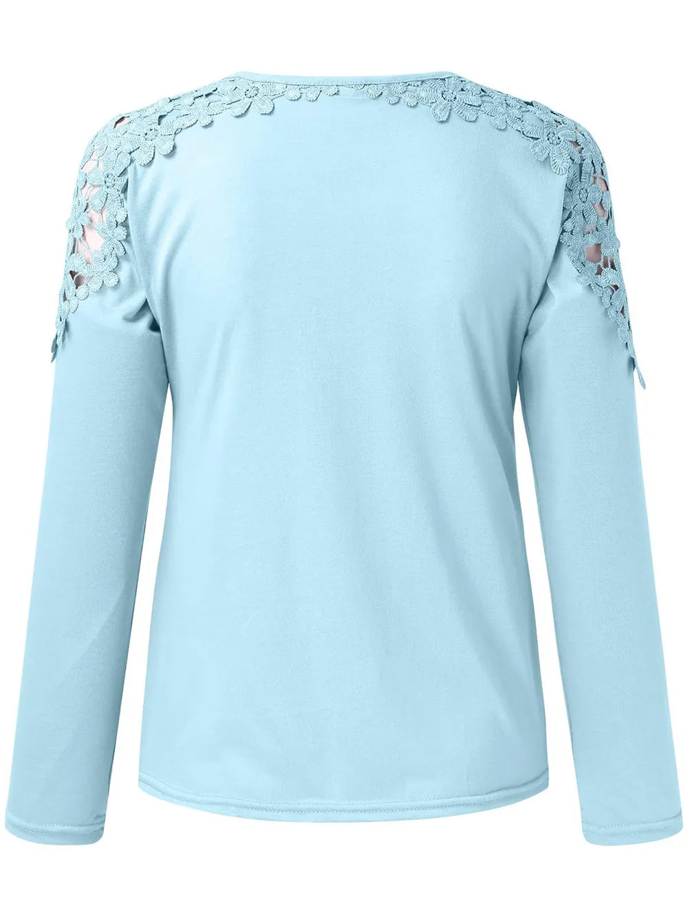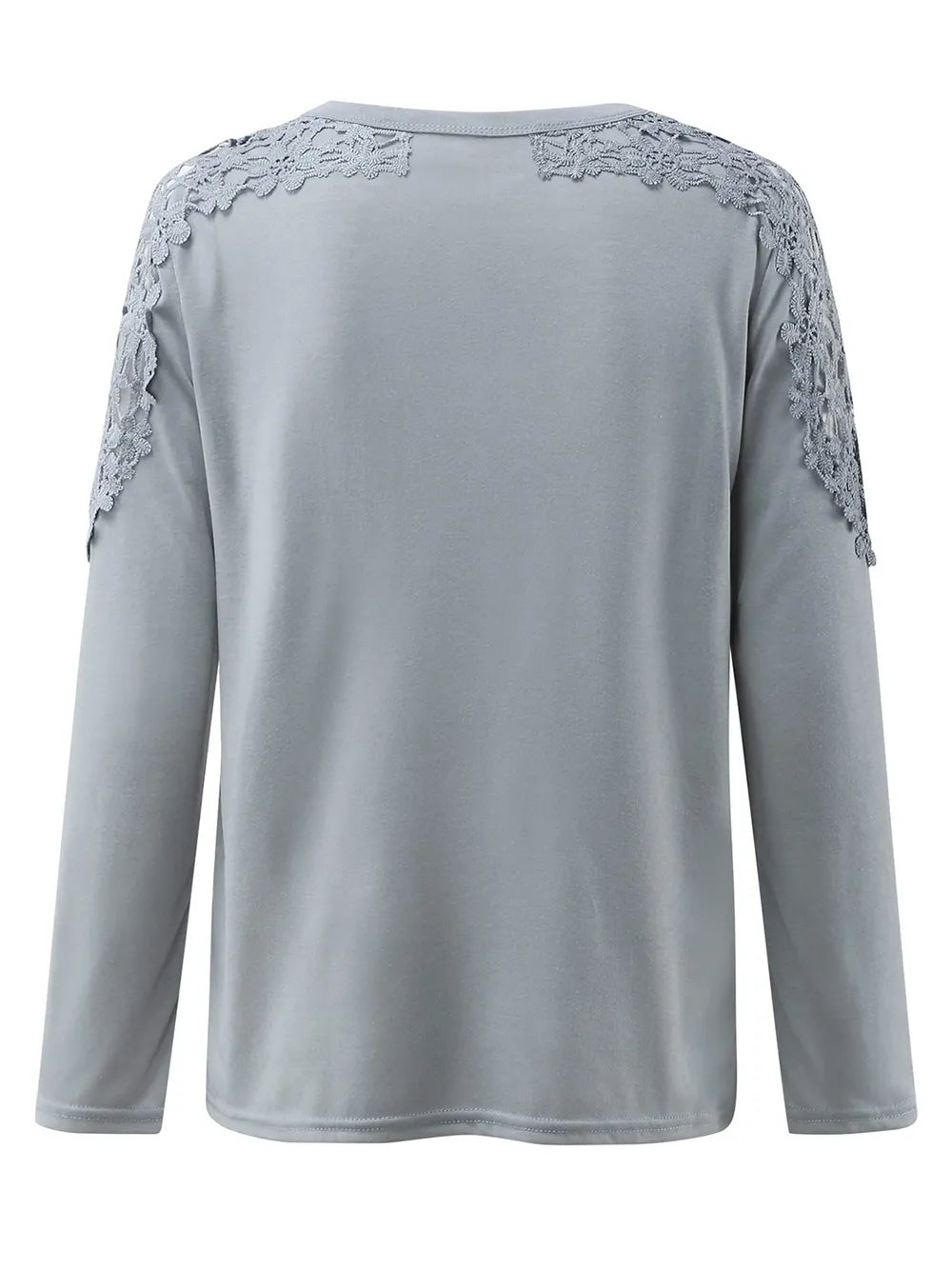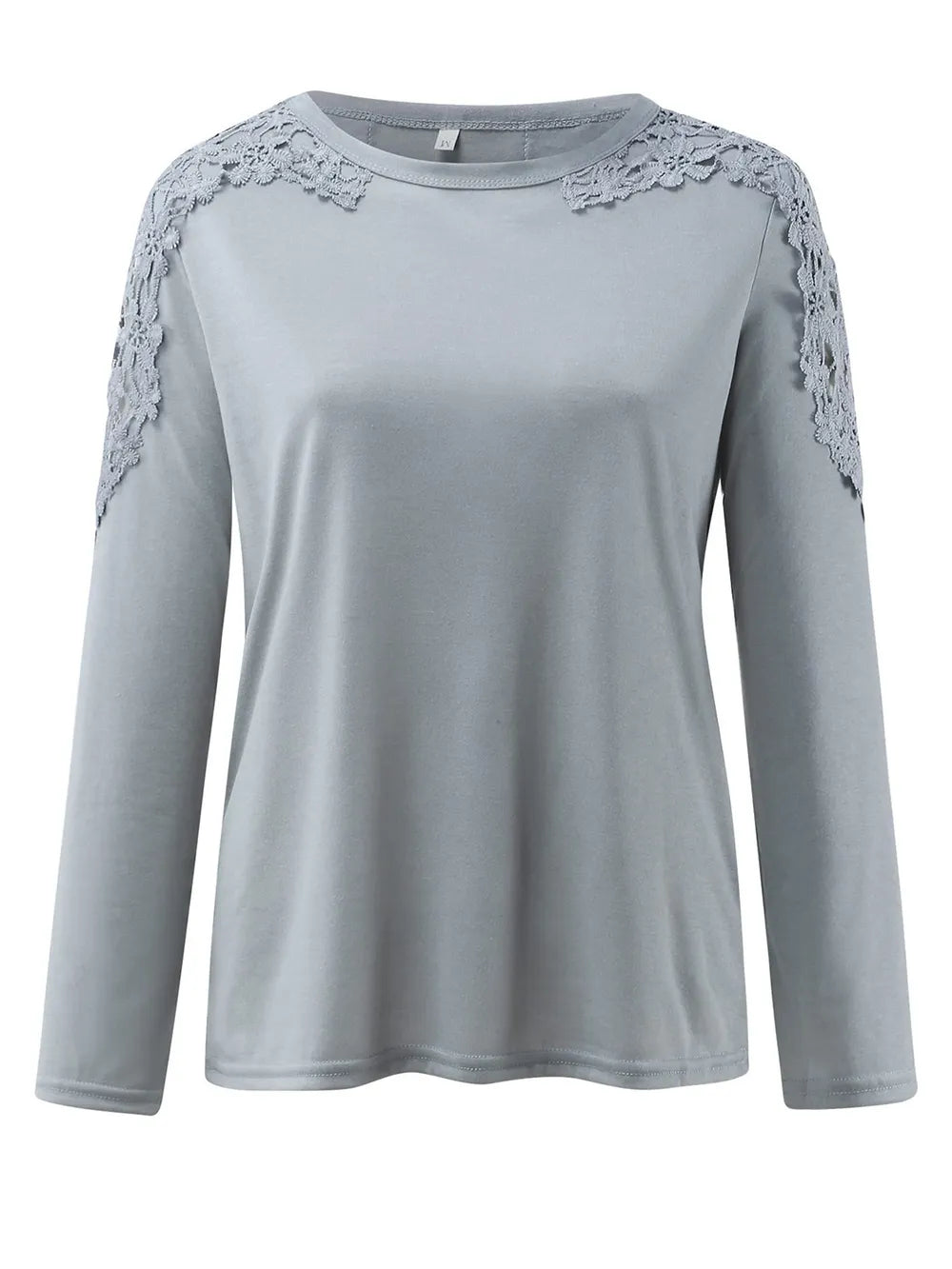 This piece effortlessly combines sophisticated style with everyday comfort. The delicate lace detail adds a refined touch, creating a look that gently elevates your ensemble with subtle texture and depth. Crafted from a premium blend of polyester and spandex, the fabric offers a slight stretch that moves with your body, providing ease and fluidity without clinging. Its semi-sheer quality introduces a hint of lightness and elegance, making it perfect for layering or wearing as a statement piece.