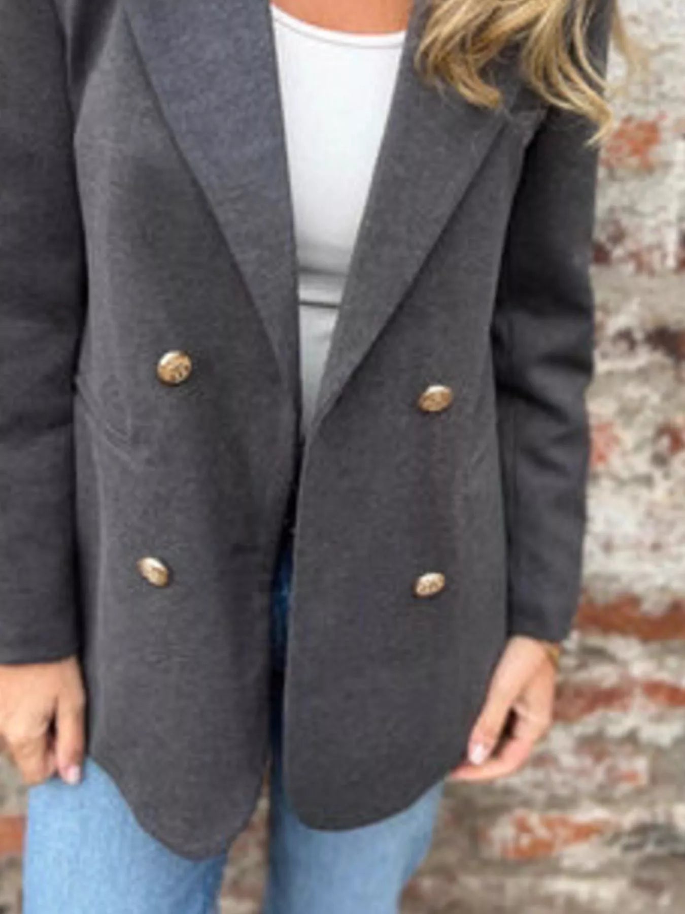 The double-breasted buttoned front is a nod to timeless style, delivering a polished aesthetic that elevates your look instantly. Thoughtfully designed sleeves provide a structured yet comfortable fit, with precise measurements that allow ease of movement without compromising on elegance. From size S through 3XL, every proportion is carefully calibrated to celebrate your unique shape while offering exceptional comfort.