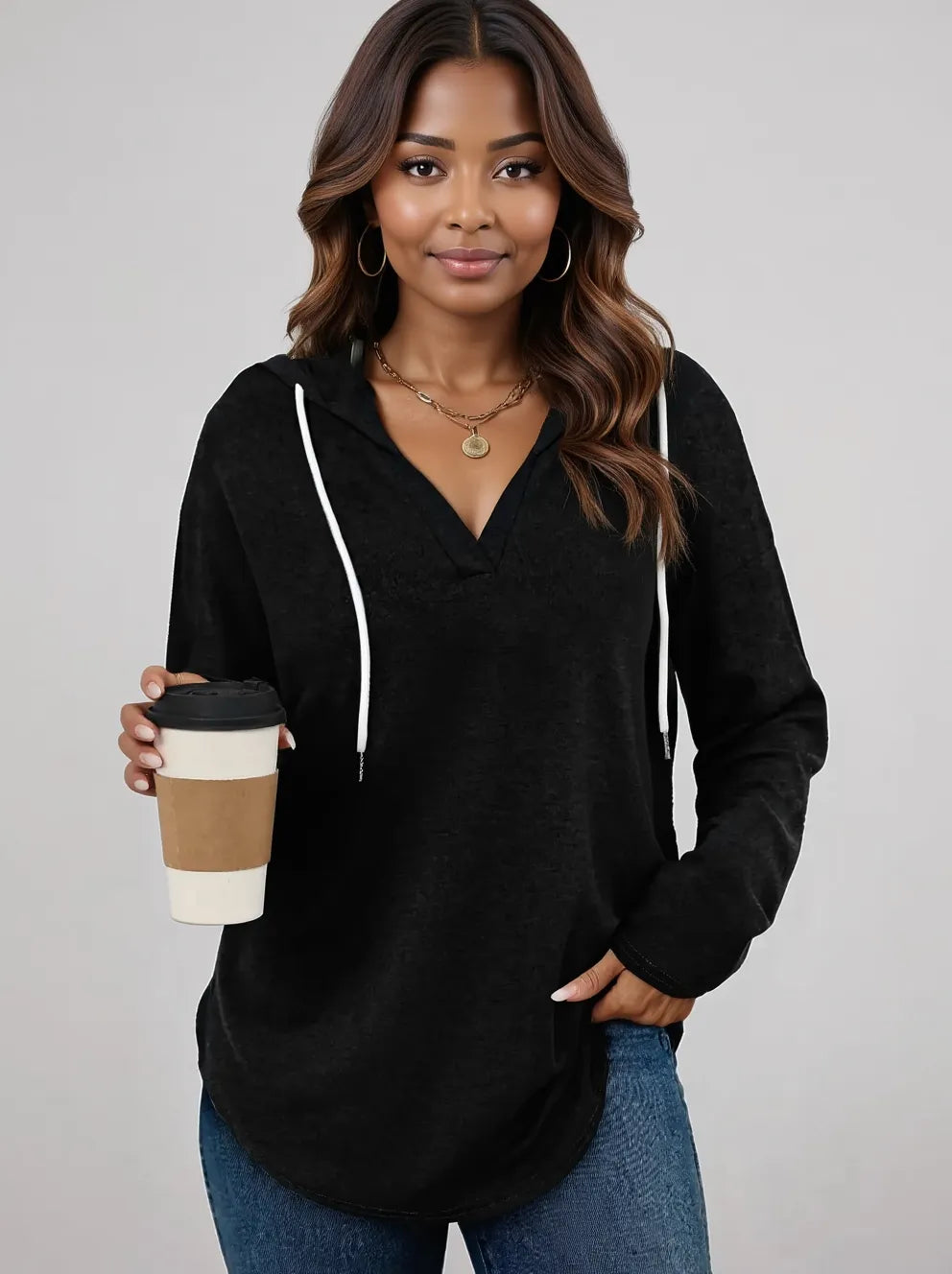 The drawstring detail adds a contemporary touch, allowing you to adjust the fit to your preference, enhancing the silhouette with a tailored finish while maintaining the piece’s inherently fluid quality. Its long sleeves and cozy hood bring a versatile edge to your wardrobe, perfect for layering or wearing as a standalone statement piece that embodies casual luxury.