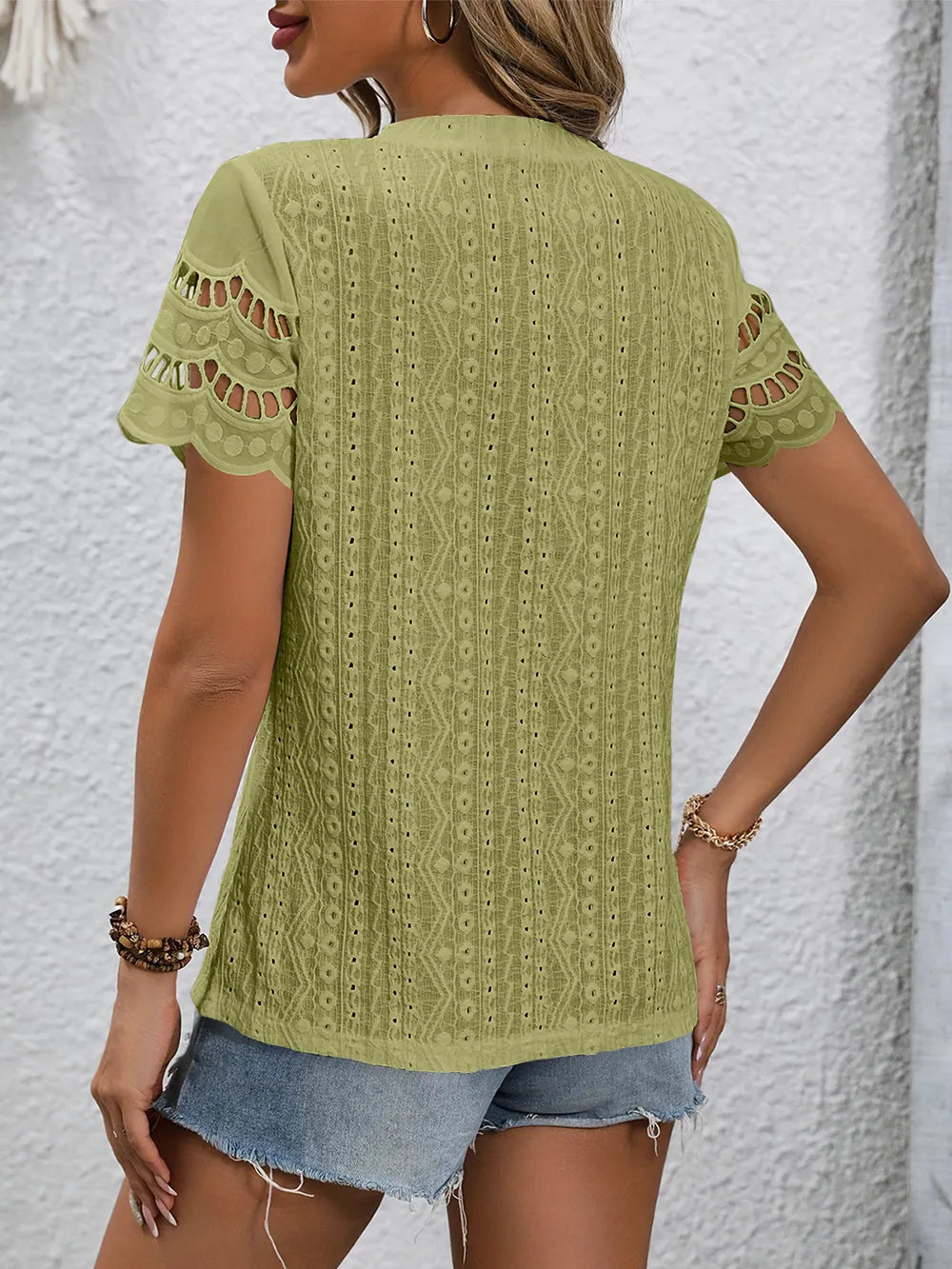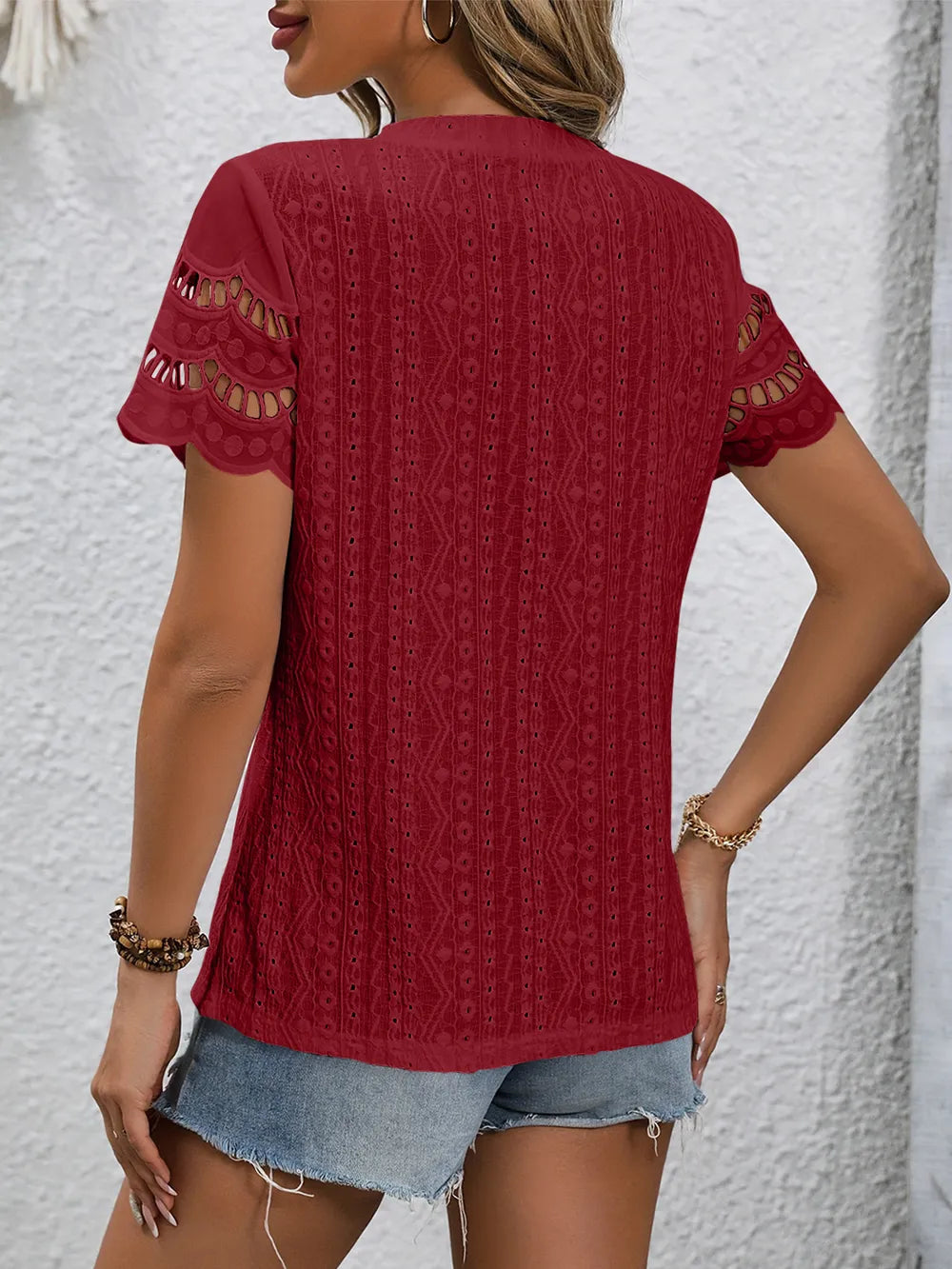 Full Size Eyelet Round Neck Short Sleeve Top