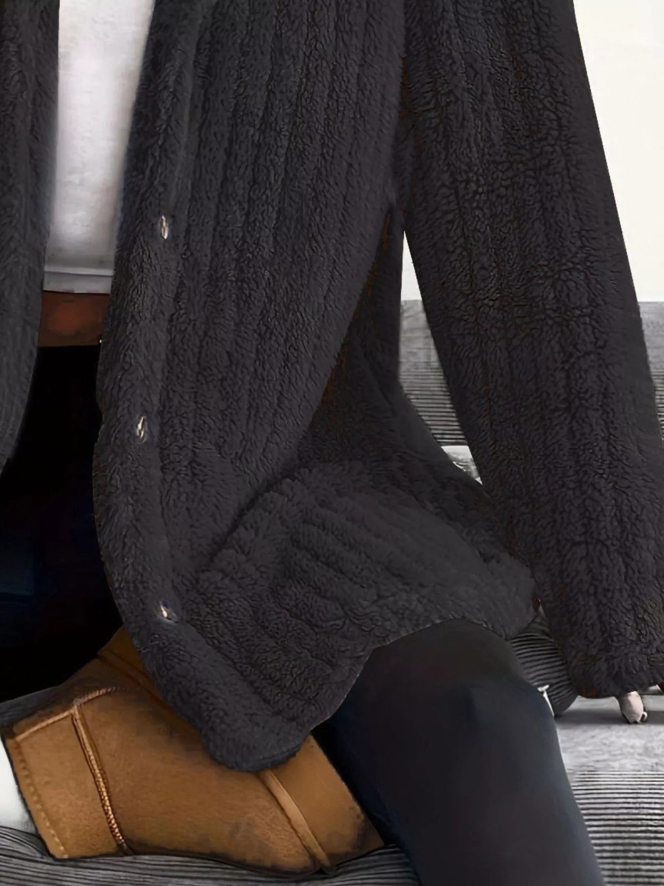 Full Size Fleece Button Up Hooded Outerwear Plus Size