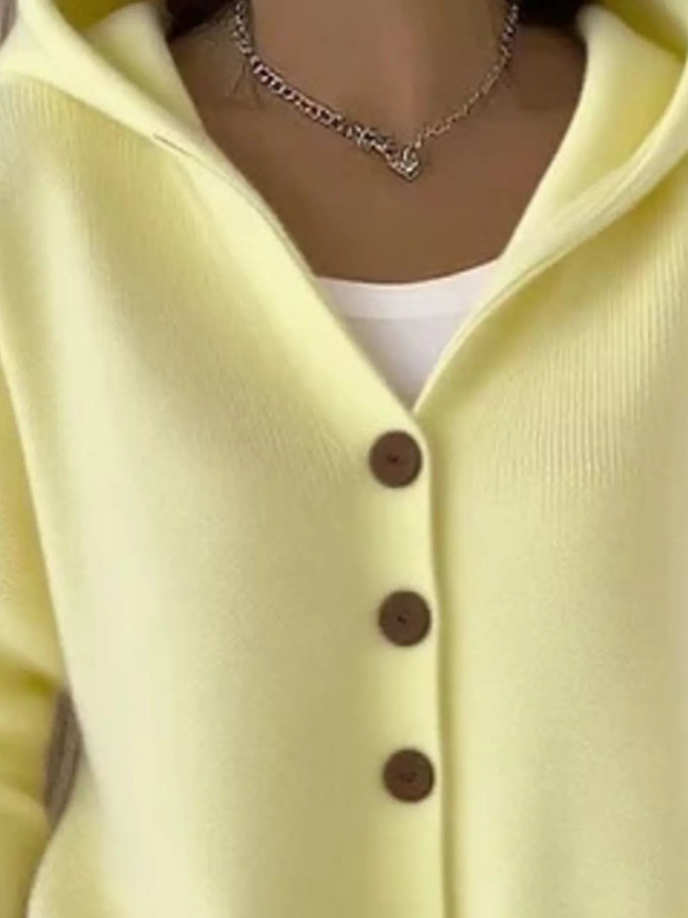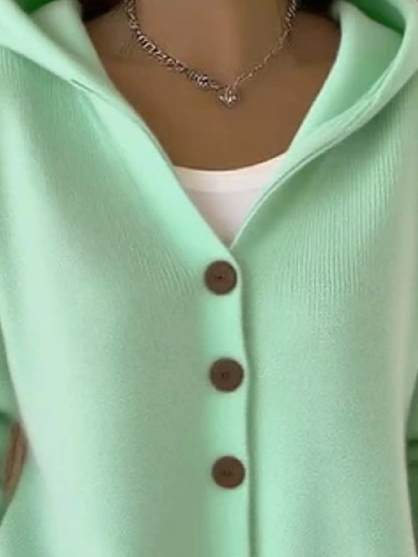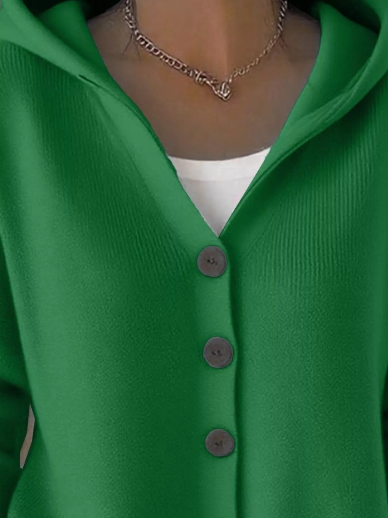 Embrace the perfect harmony of style and comfort with our Full Size Hooded Button-Front Soft Knit Cardigan. Designed for the woman who cherishes effortless elegance and ease, this cardigan offers a refined silhouette that gently flows with your natural curves, celebrating your shape with grace and fluidity. The slightly stretchy fabric — a rich blend of 95% acrylic and 5% spandex — provides a soft, luxurious touch that moves seamlessly with you, ensuring all-day comfort without ever feeling restrictive.