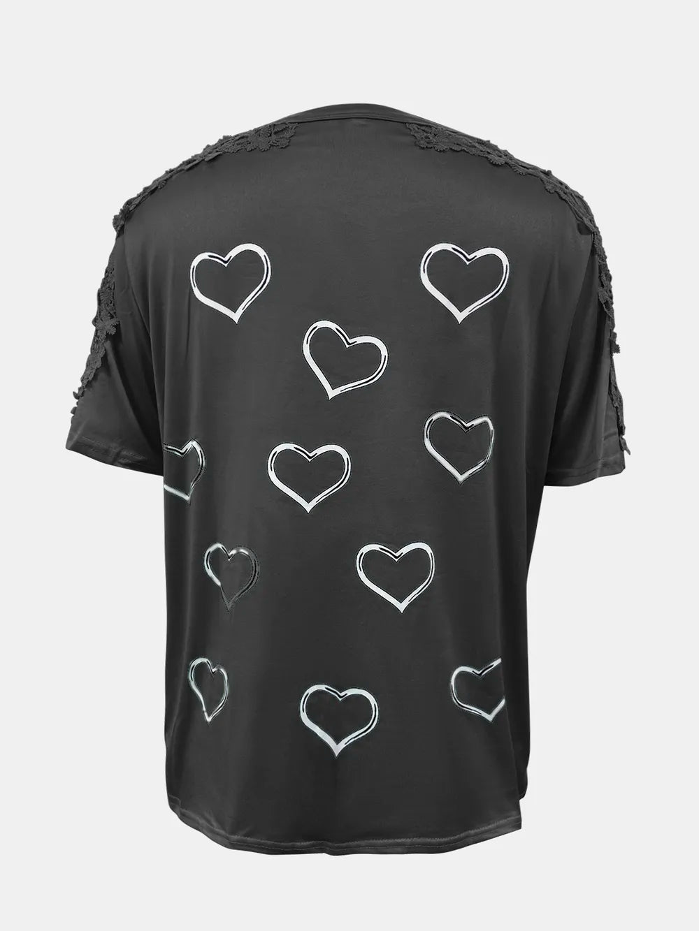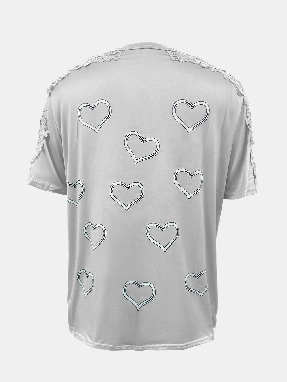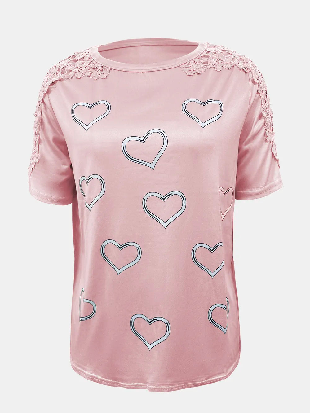 Full Size Lace Detail Heart Round Neck Short Sleeve Top