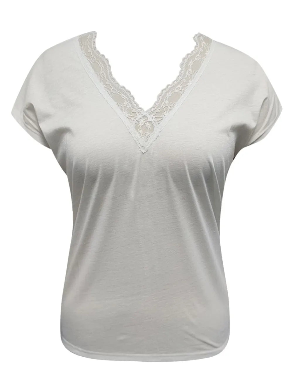Full Size Lace Detail V-Neck Short Sleeve Blouse
