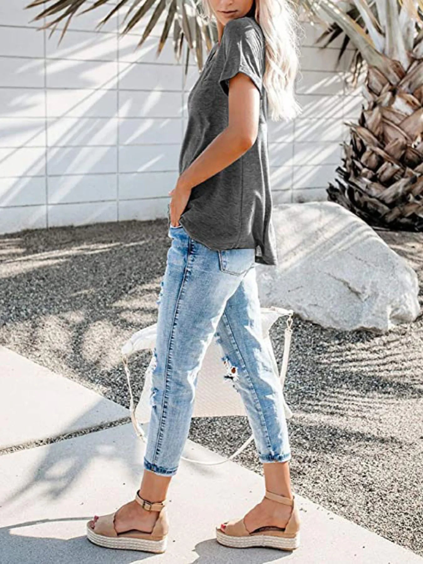 The timeless buttoned front lends a refined, classic charm that elevates this short sleeve tee beyond casual basics. Its notched neckline subtly frames the face, adding a touch of modern sophistication to the design. Whether layered under a tailored blazer or worn alone, this versatile top effortlessly enhances your wardrobe with a chic, polished edge.