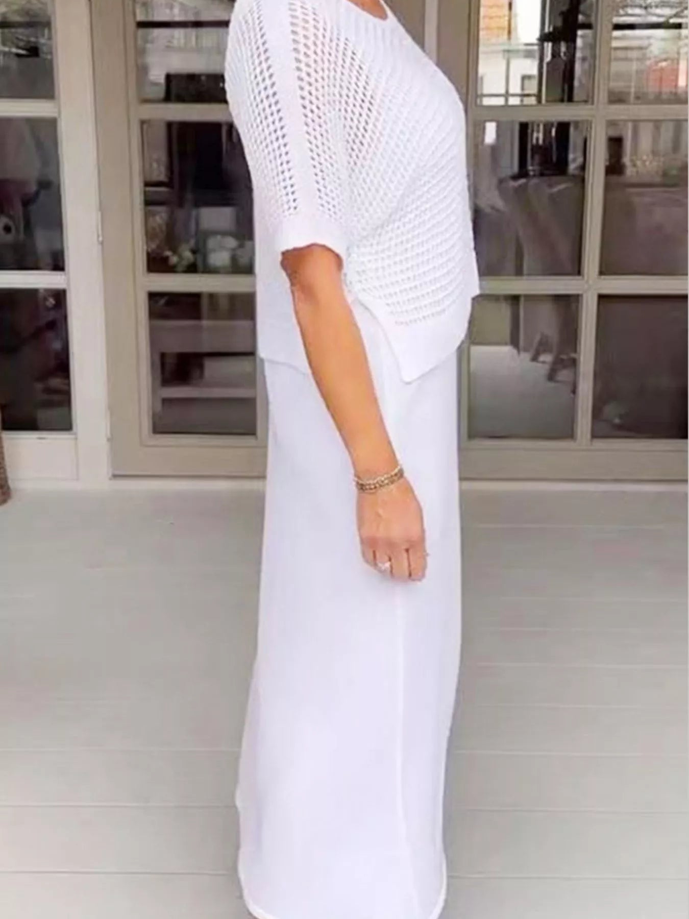 Discover an exquisite balance of style and comfort with our Full Size Openwork Knit Cover Up and Dress Set, a sophisticated two-piece ensemble designed to elevate your wardrobe effortlessly. The oversized silhouette is thoughtfully crafted to create a graceful, fluid drape that celebrates your natural curves with ease, offering an elevated yet relaxed aesthetic perfect for any occasion.