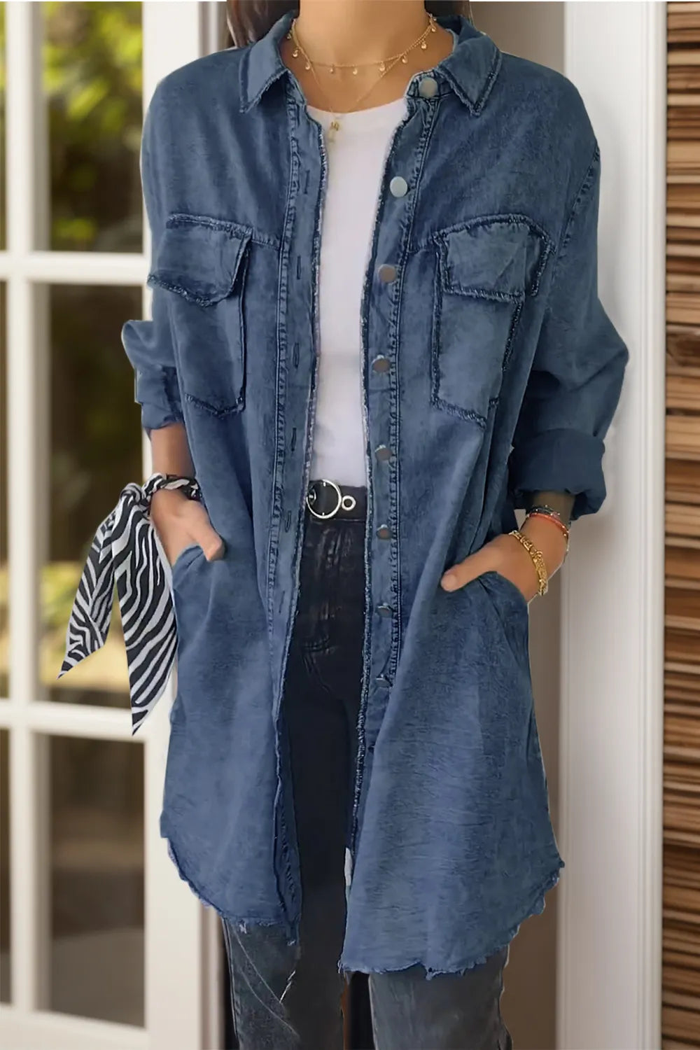 Full Size Pocketed Button Up Long Sleeve Denim Jacket