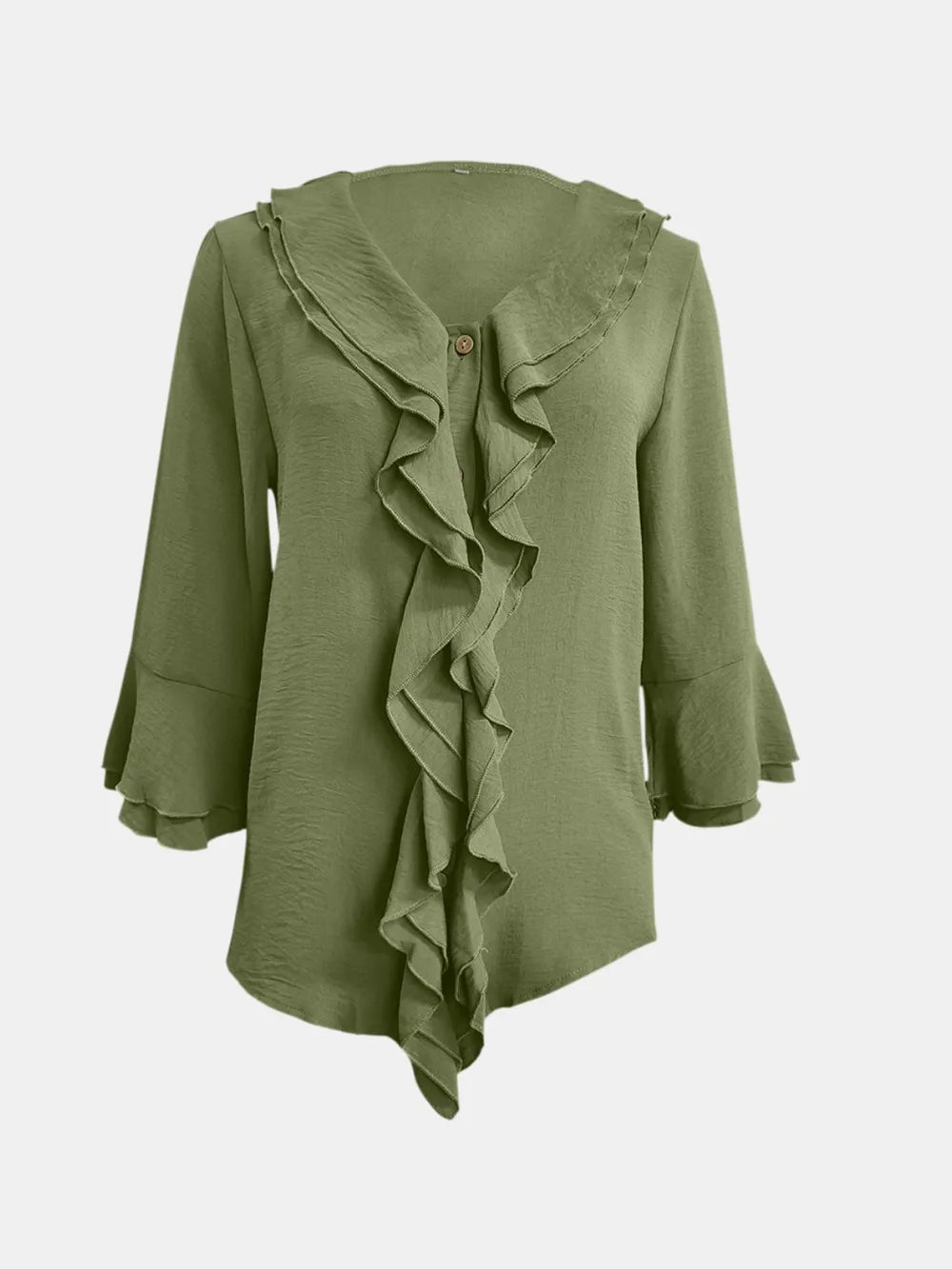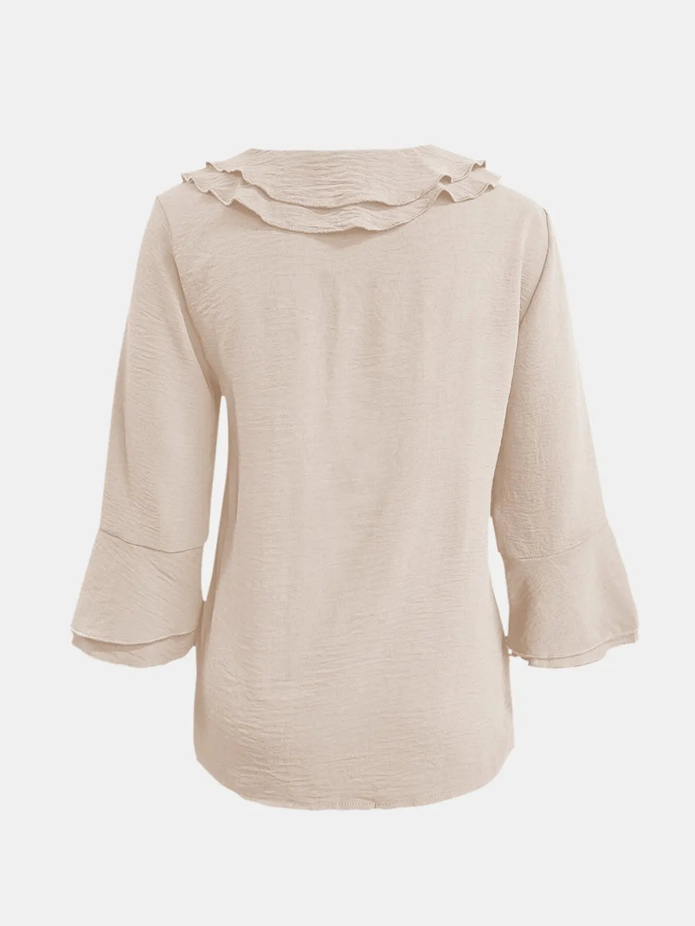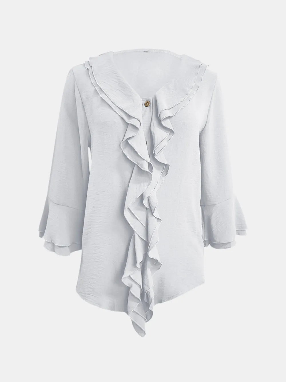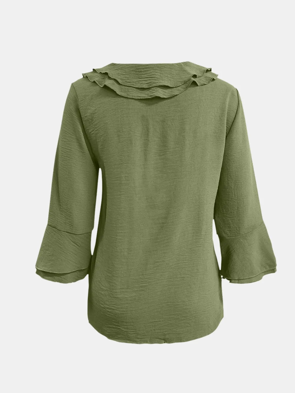 Full Size Ruffled V-Neck Flounce Sleeve Blouse