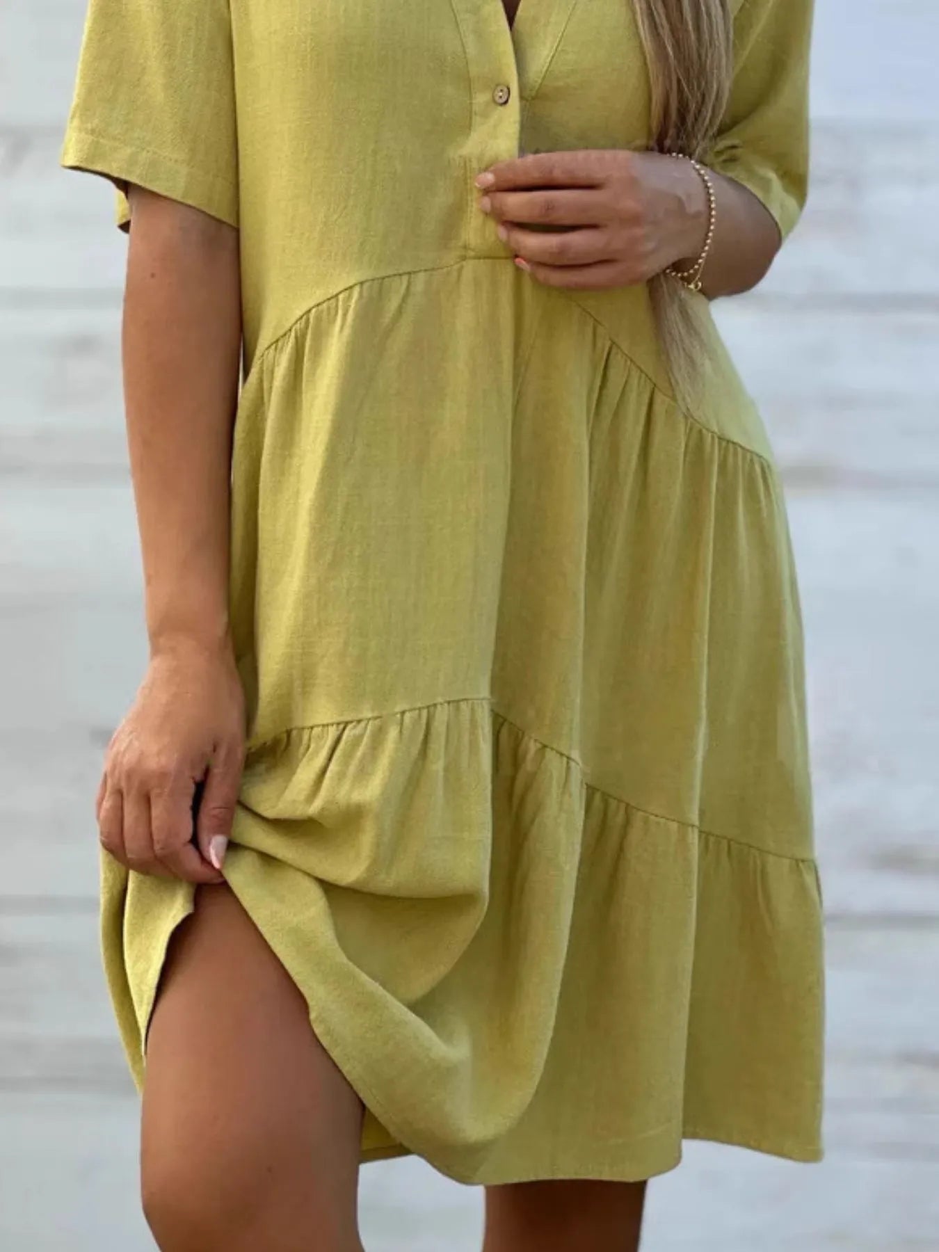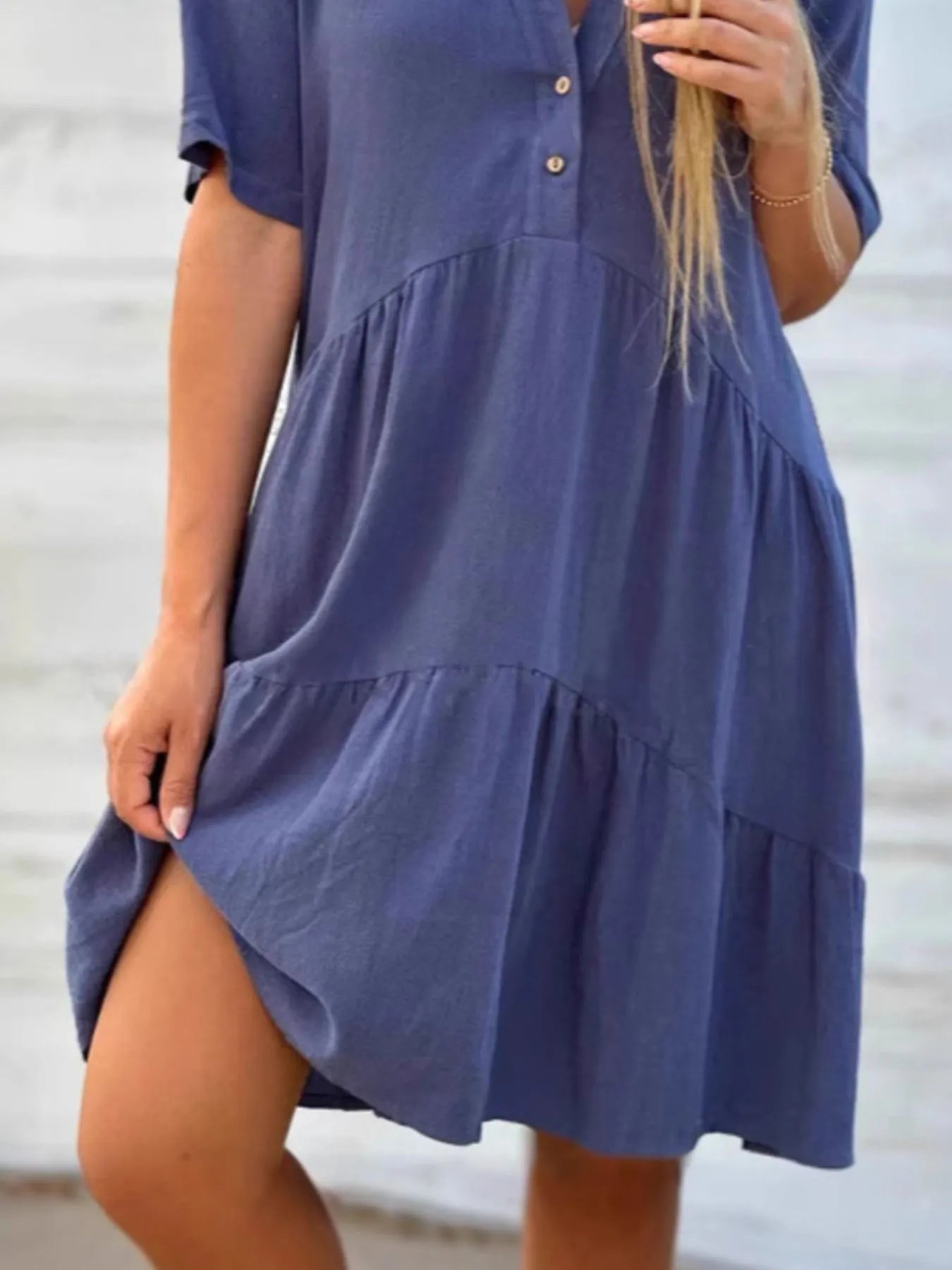 Full Size Tiered Button-Front Short Sleeve Dress Plus Size