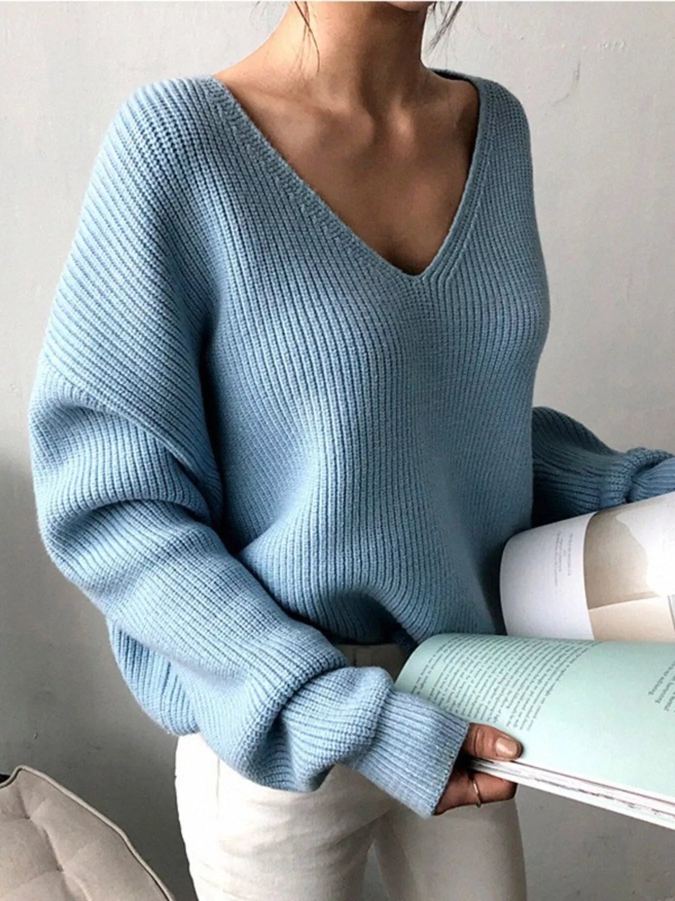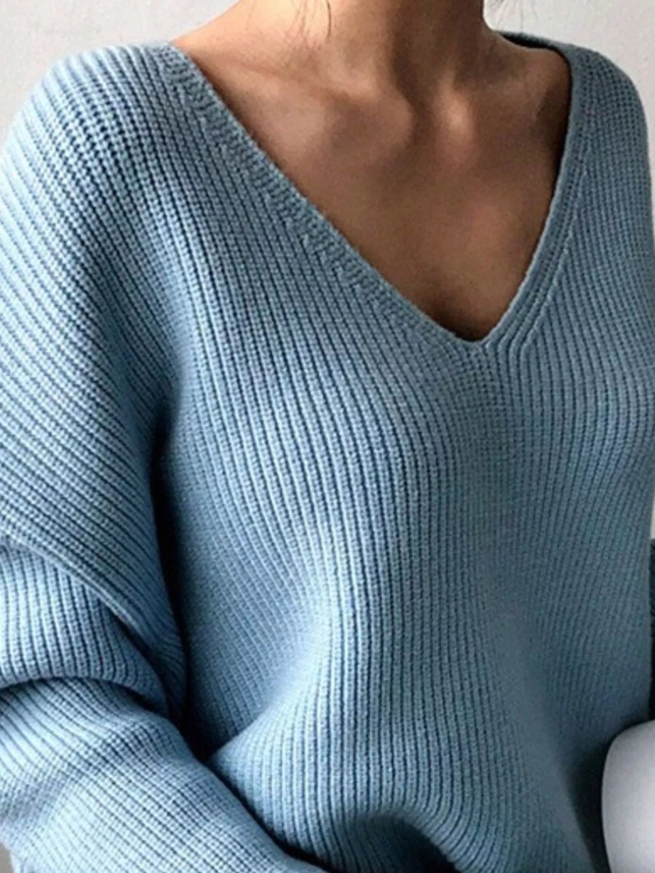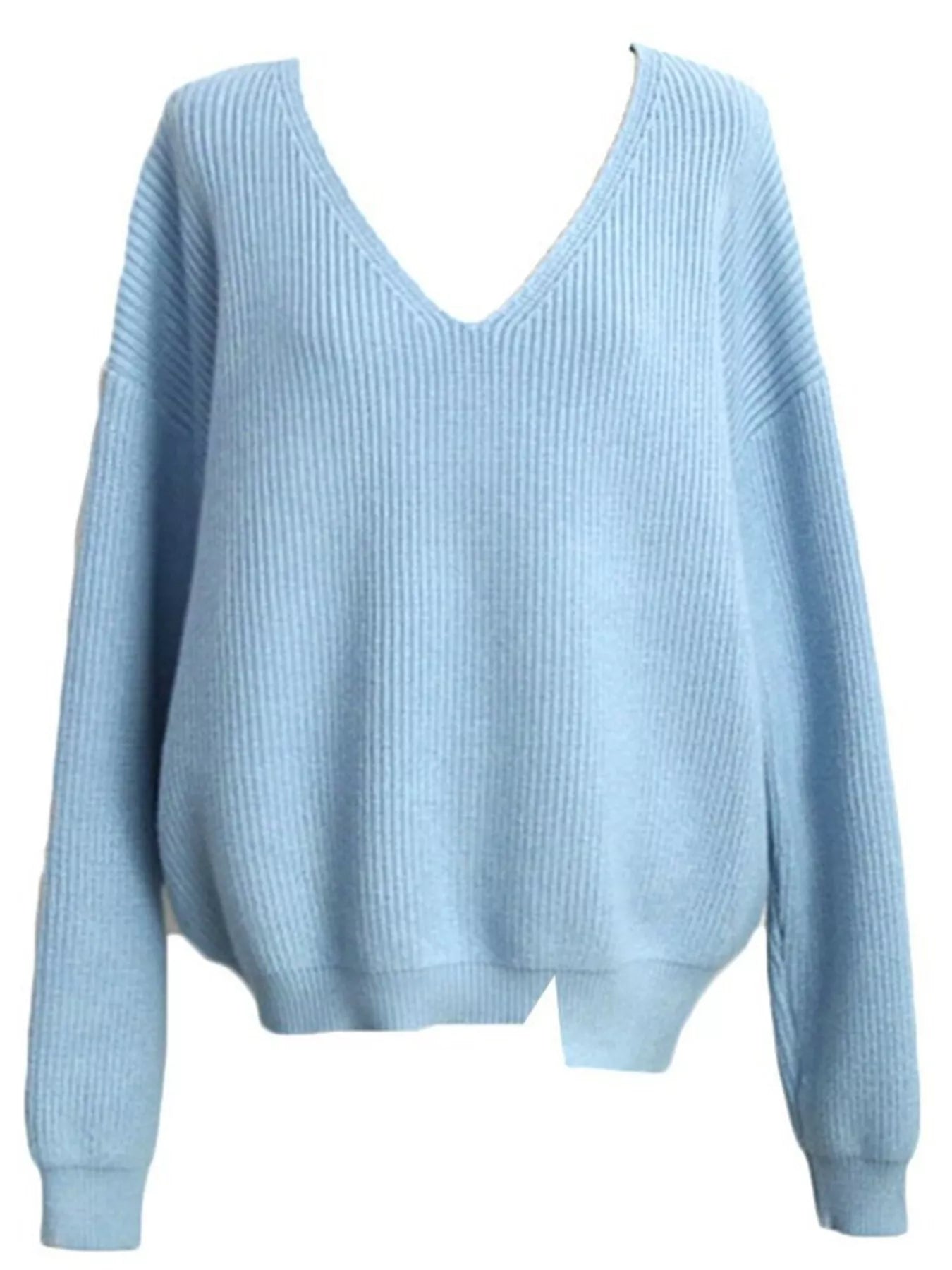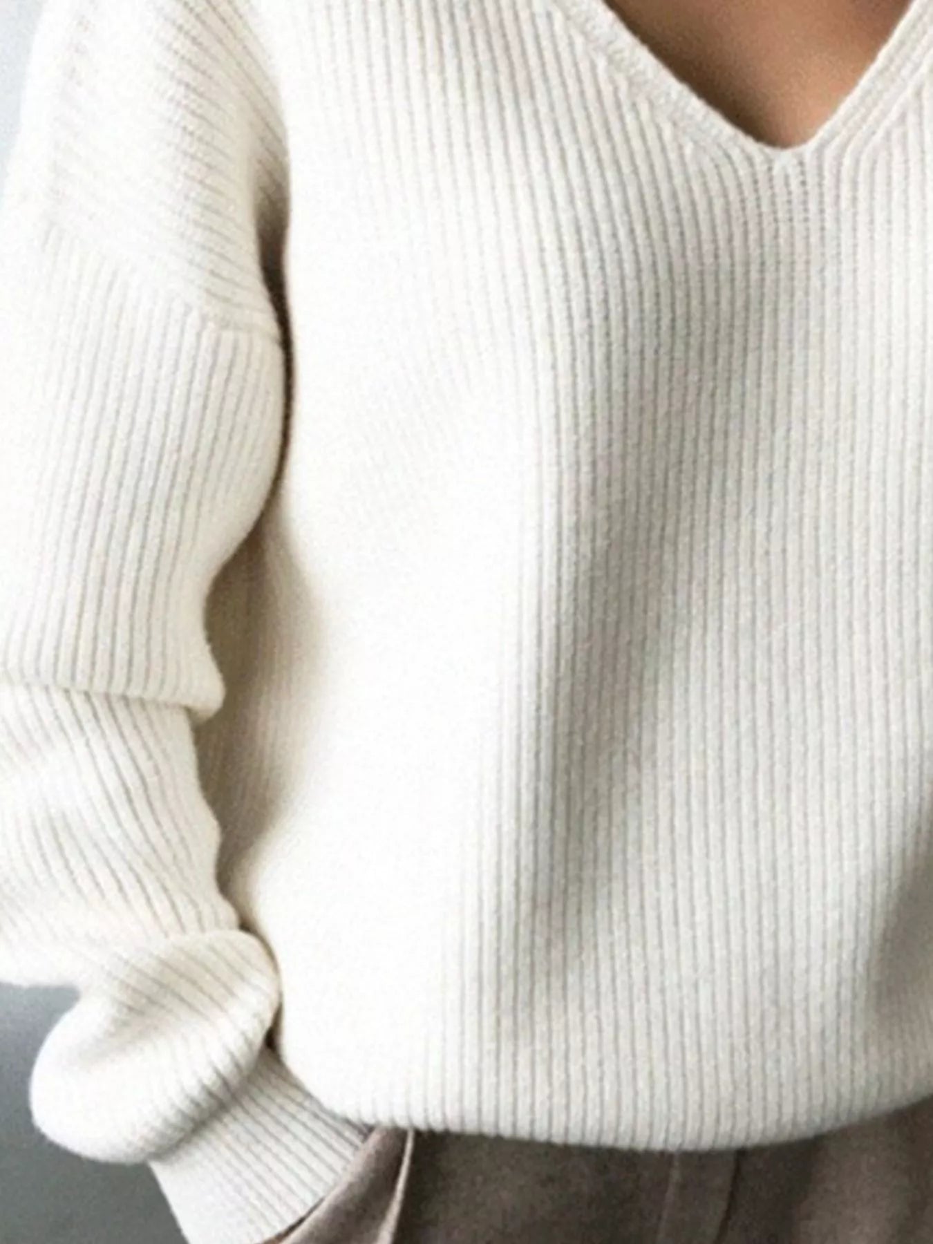 Full Size V-Neck Dropped Shoulder Sweater Plus Size
