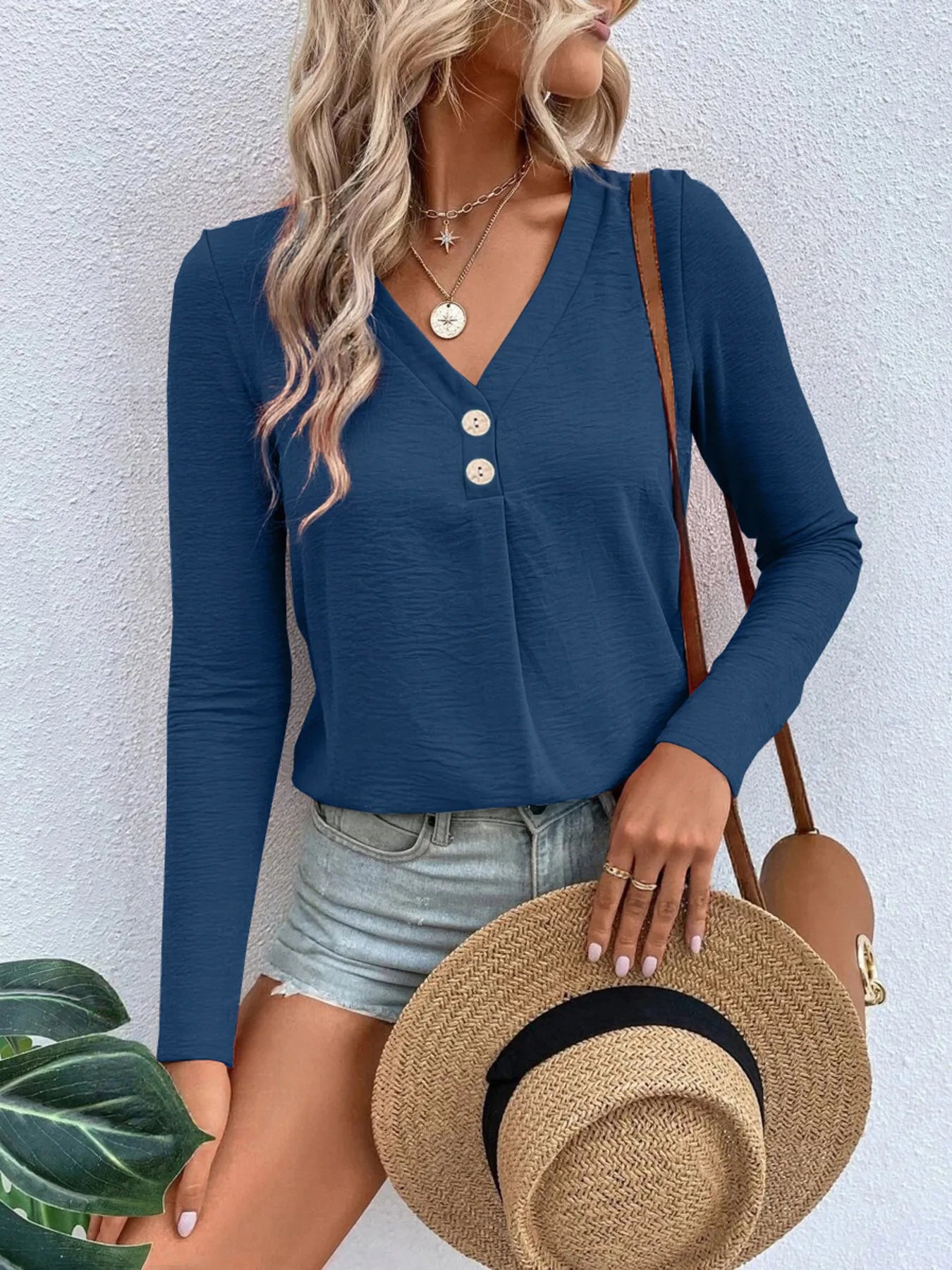 Full Size V-Neck Long Sleeve T-Shirt Plus Size