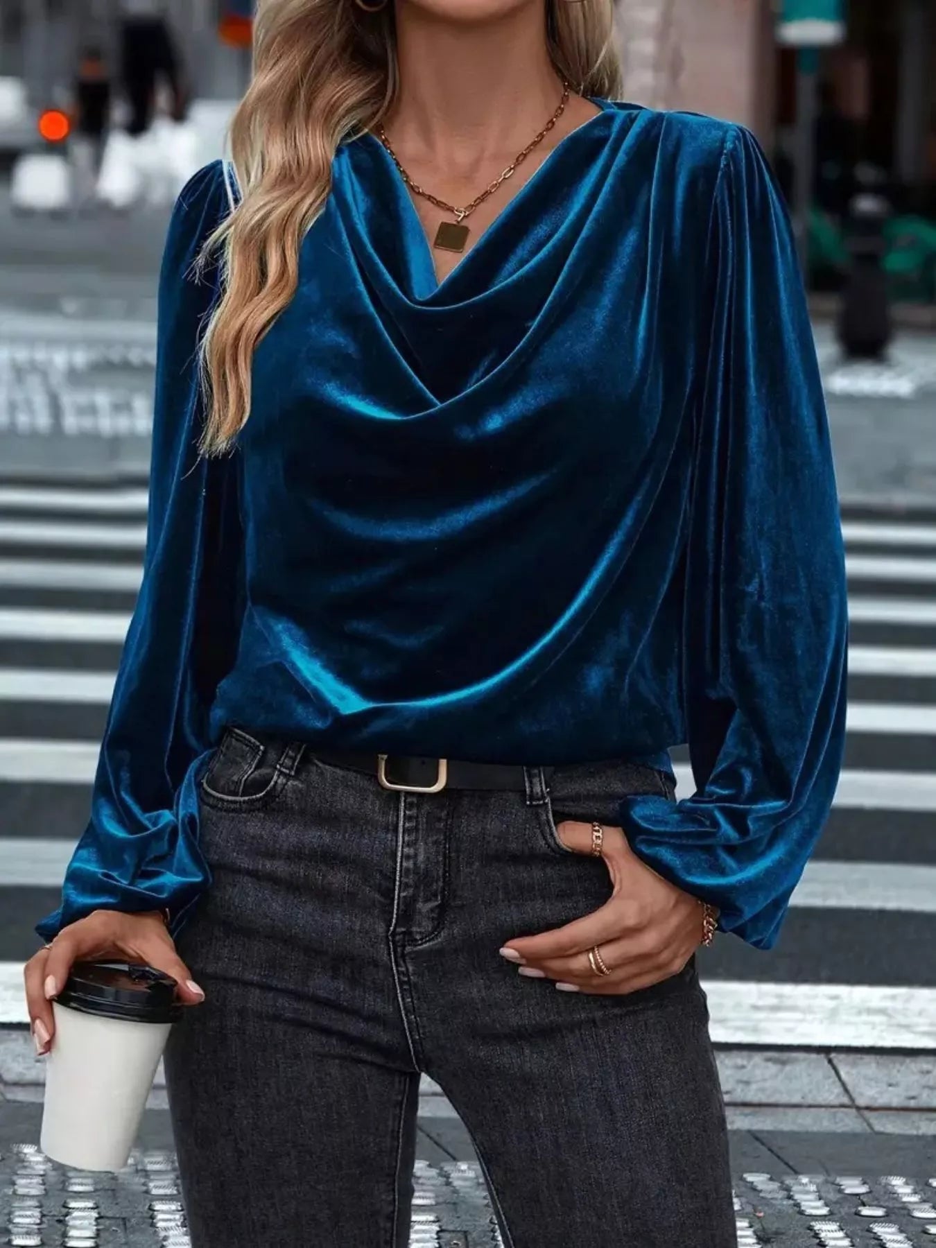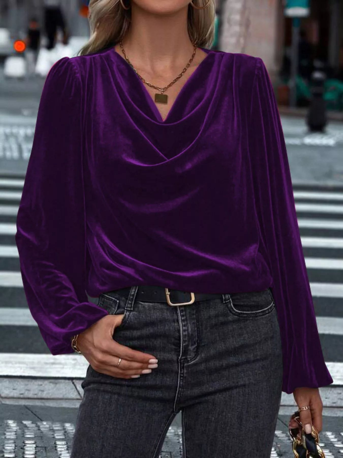 Full Size Velvet Cowl Neck Blouse Plus Size