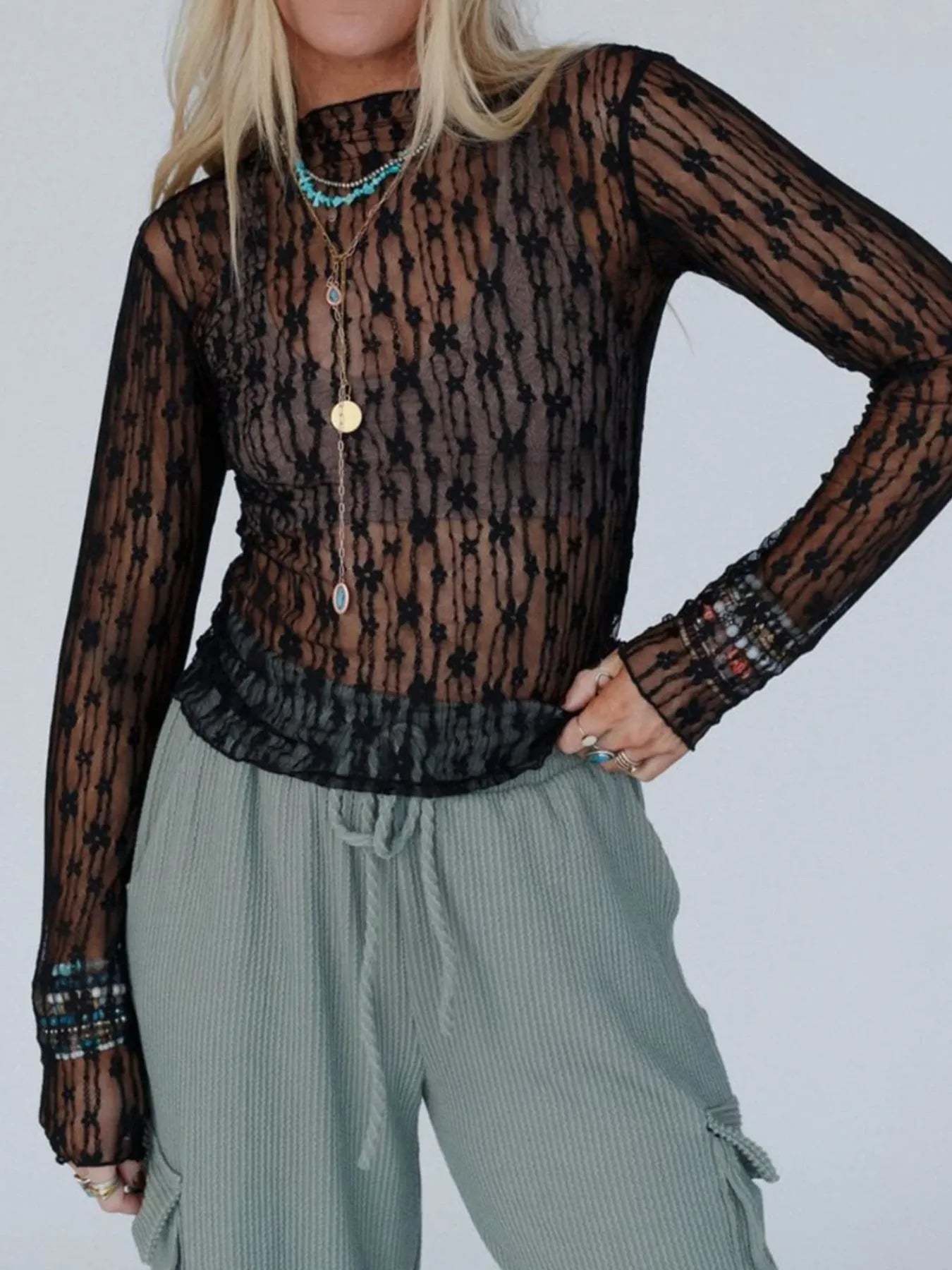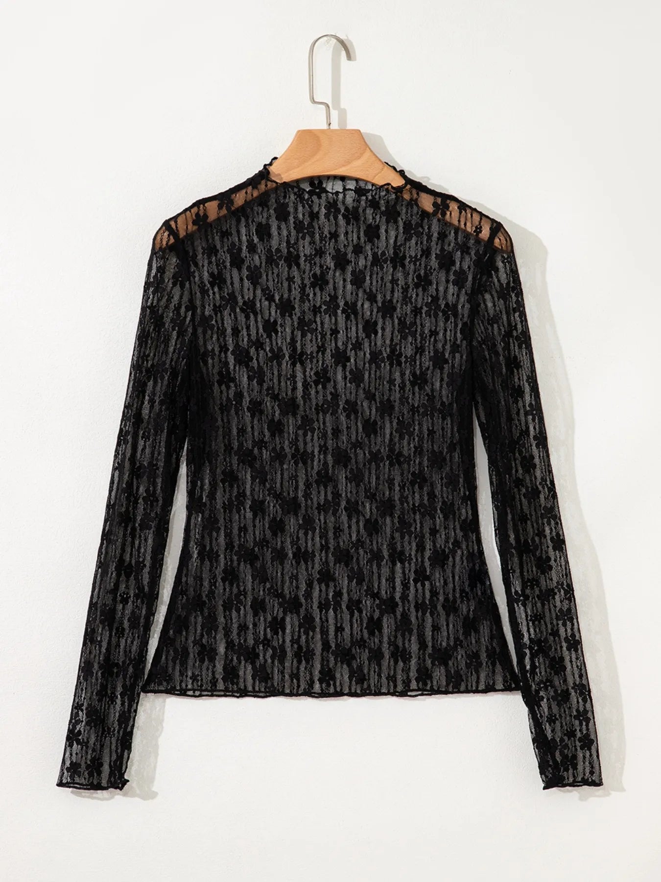 Experience a refined balance of style and comfort with this exquisite piece designed to elevate your wardrobe. The delicate lace and sheer elements introduce a sophisticated texture that gracefully enhances your silhouette, while the slightly stretchy fabric gently drapes your curves without restriction. This ensures effortless movement and all-day comfort, allowing you to feel as confident as you look.