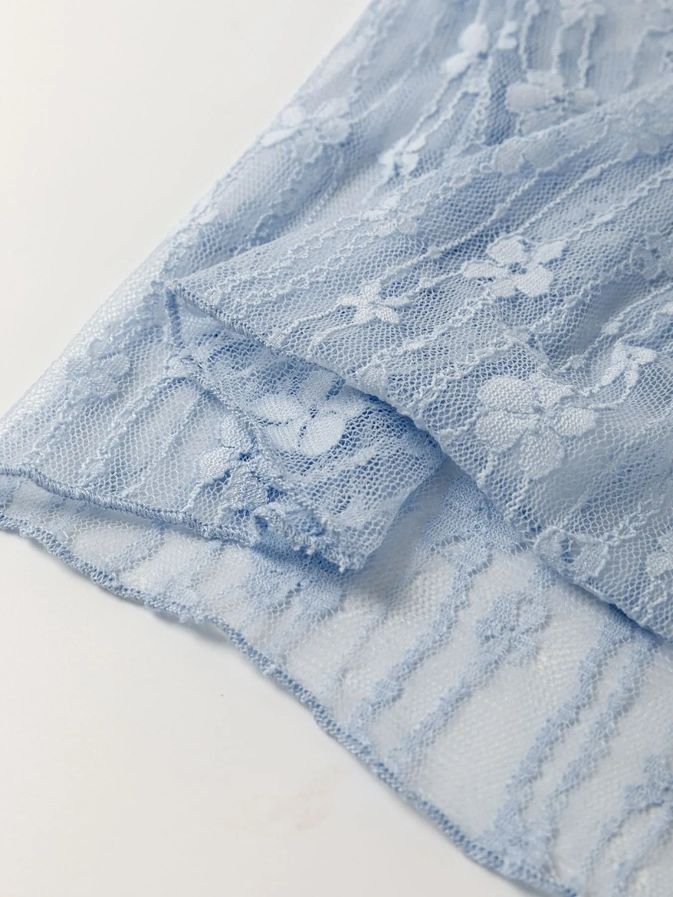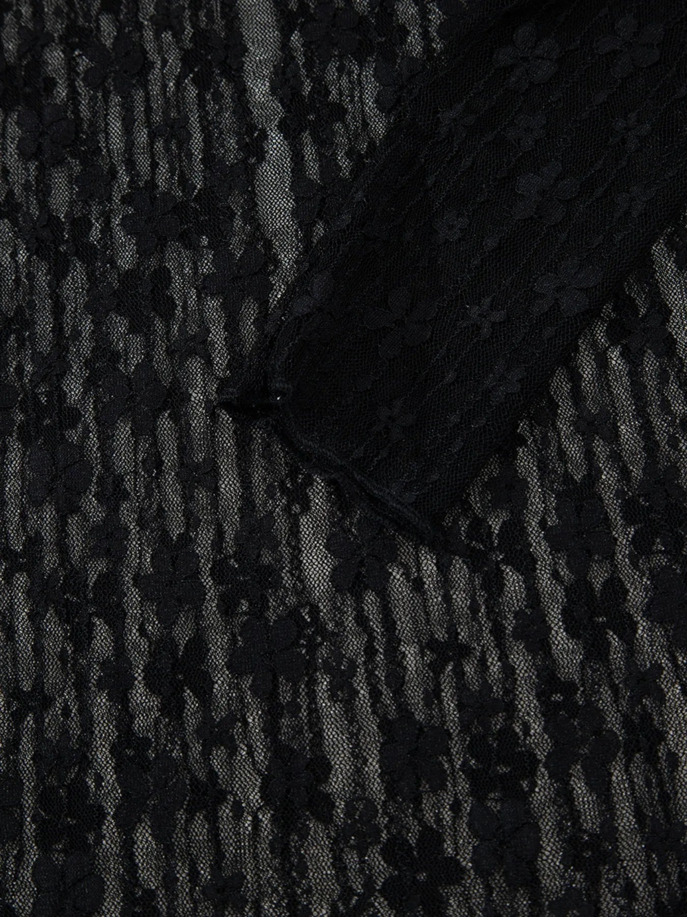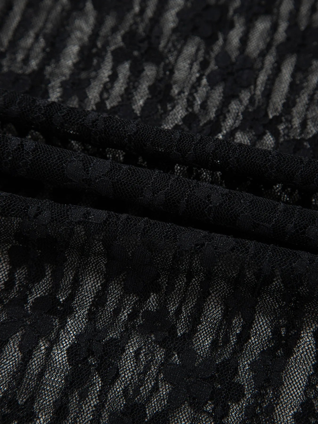 - Features: Delicate lace overlay with sheer panels for an elegant, textured look