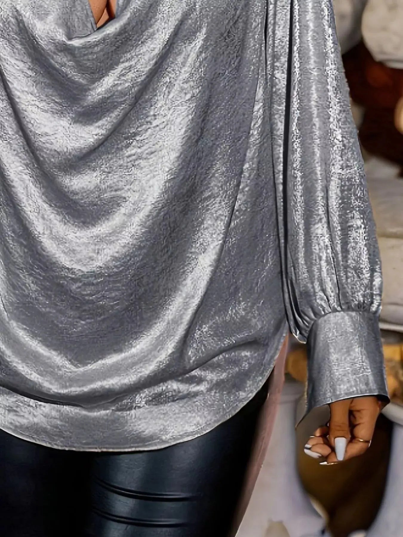 The signature cowl neck detail creates an elegant drape that softly frames your neckline, adding a sophisticated flair to your ensemble. Long sleeves with a tailored cut ensure freedom of movement while maintaining a sleek, graceful appearance. This blouse is designed with your lifestyle in mind, balancing style and comfort seamlessly so you can feel confident and poised from morning meetings to evening gatherings.