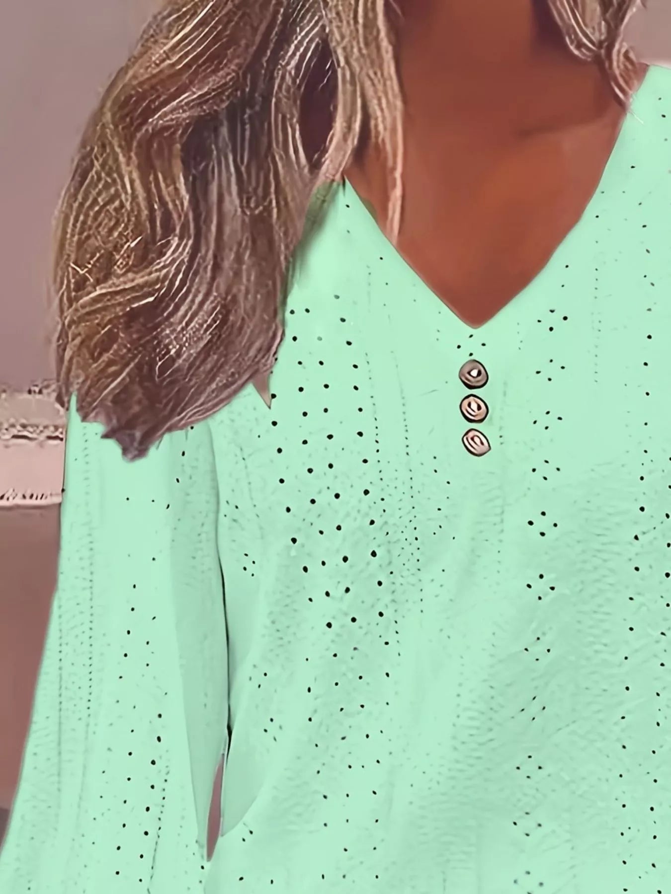 Discover a blouse that effortlessly combines timeless sophistication with thoughtful design in the Plus Size Eyelet V-Neck Flounce Sleeve Blouse from Bella plus London. Crafted to celebrate your natural silhouette, this blouse brings together delicate eyelet patterns and refined decorative buttons that add a touch of intricate texture and modern elegance to your wardrobe.