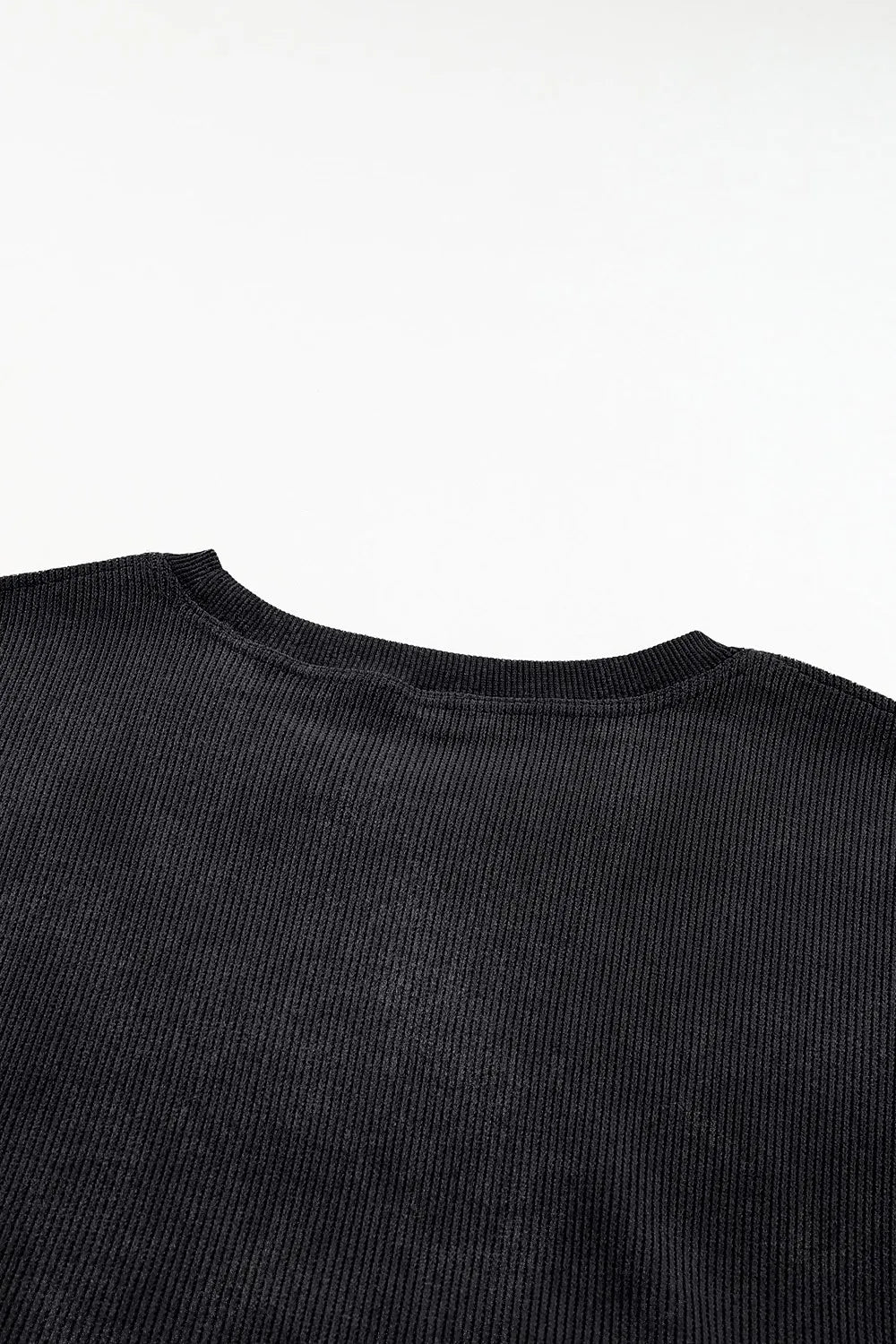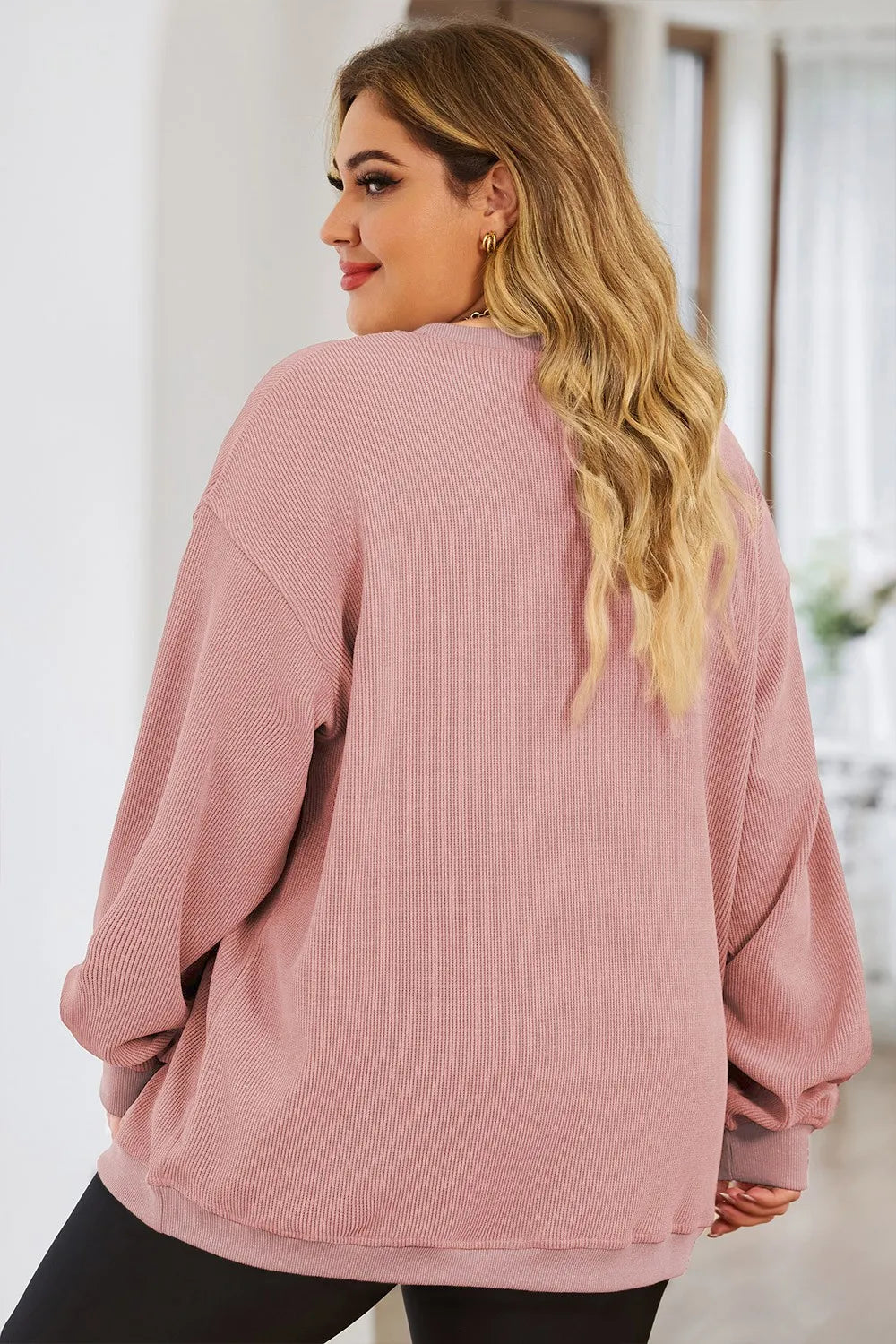 Plus Size Heart Ribbed Round Neck Sweatshirt