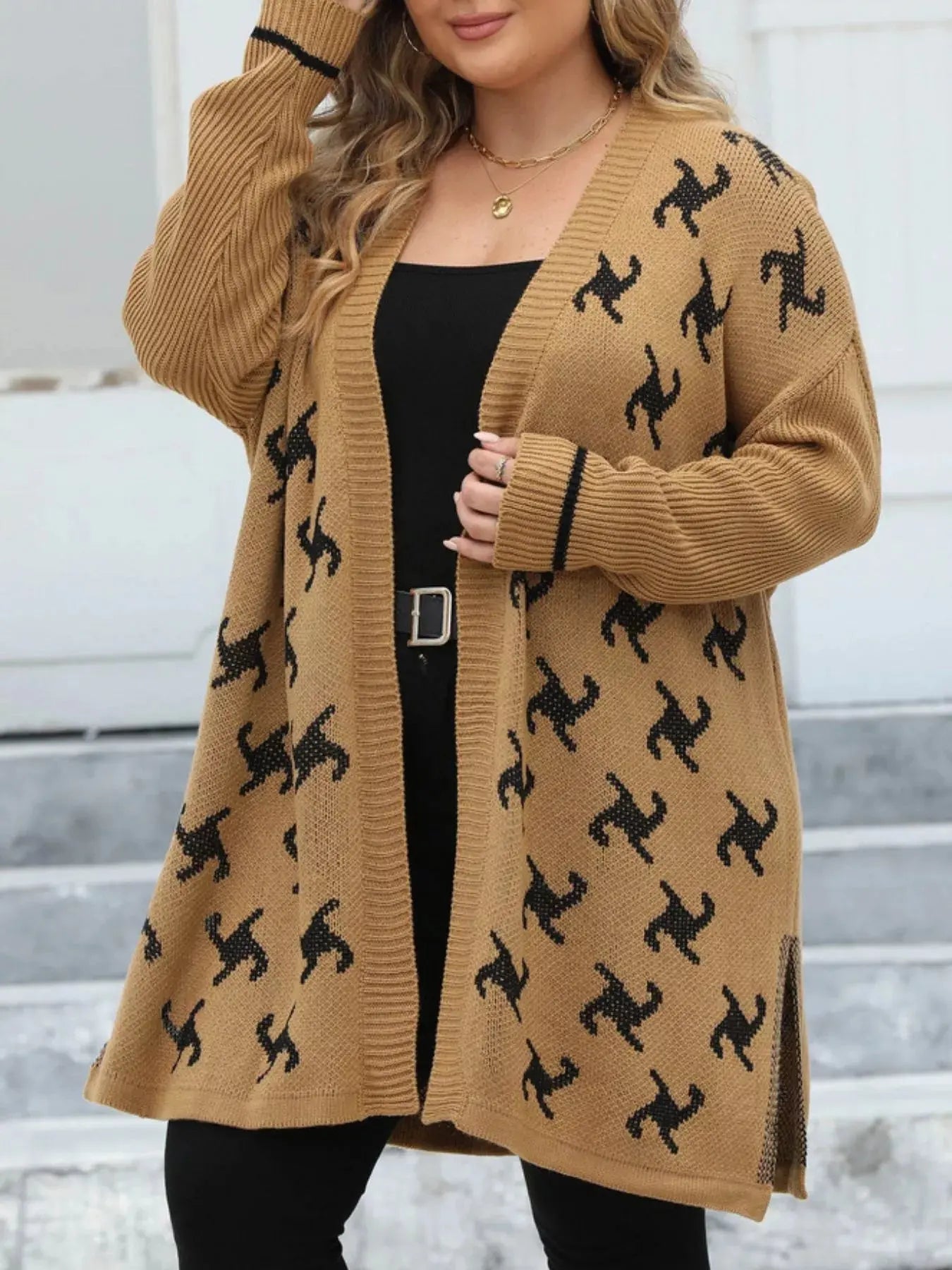 Plus Size Open Front Drop Shoulder Knit Cardigan