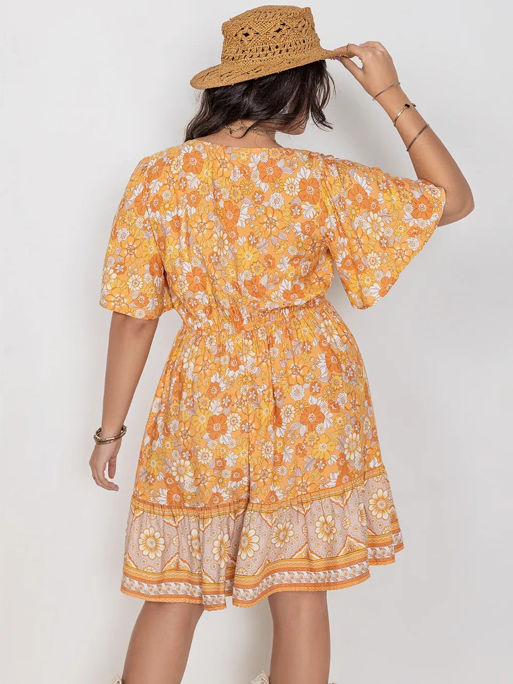 Step into a world where style effortlessly meets comfort with our Plus Size Printed Square Neck Short Sleeve Dress, a piece designed to honour and elevate your natural allure. Every detail of this dress has been thoughtfully curated to create a garment that celebrates your silhouette with an elegant, modern sensibility.