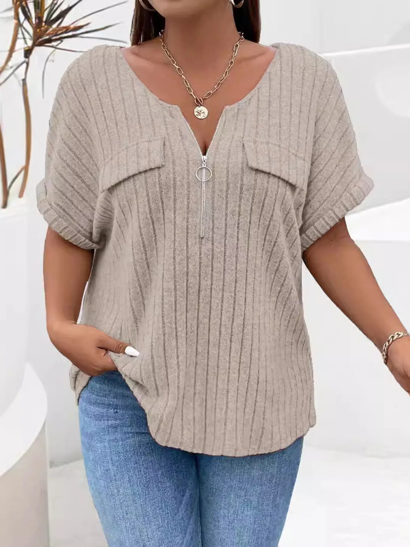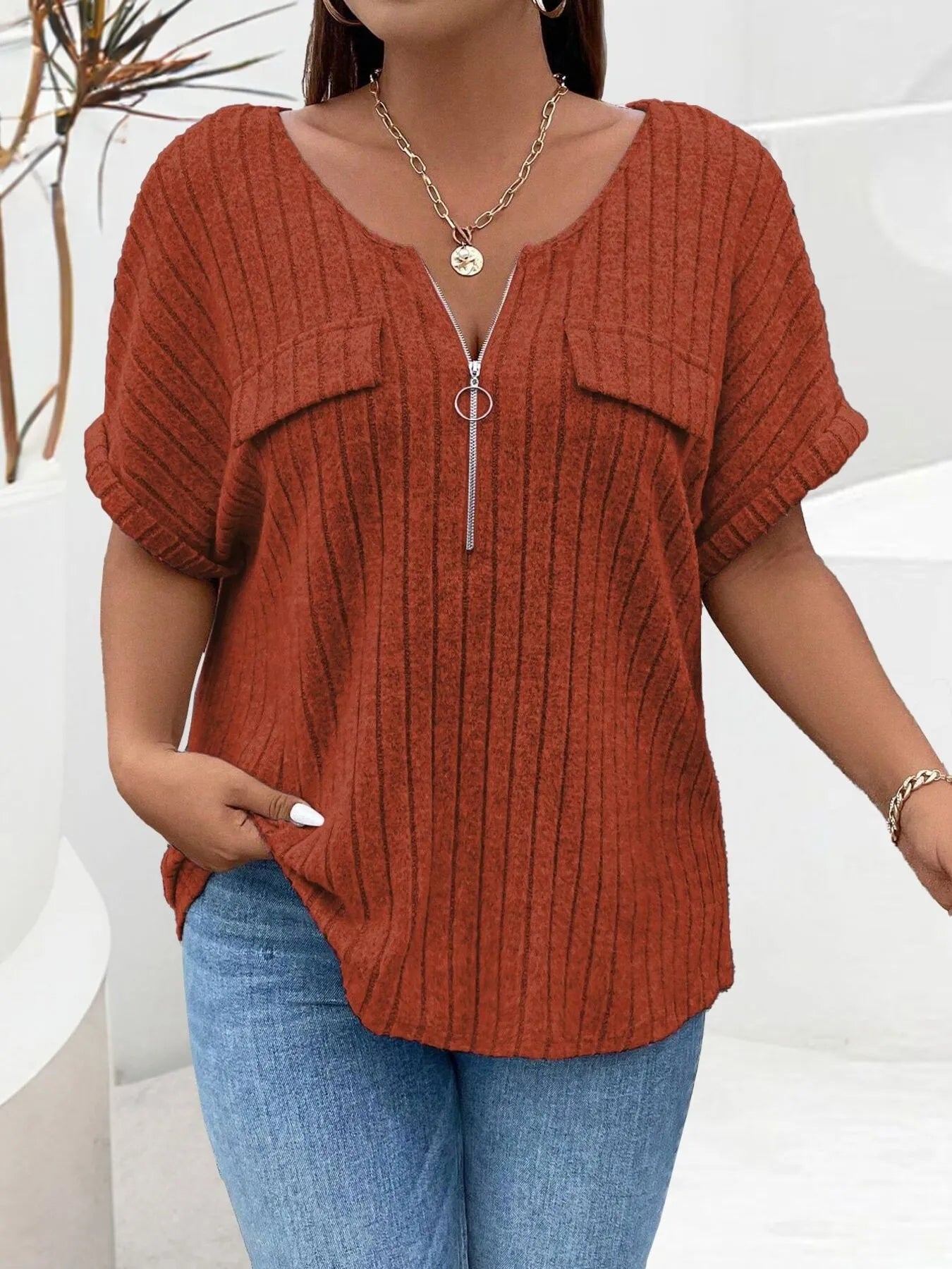 Embrace a piece that effortlessly merges comfort with elevated style—a garment that moves with your life and enhances your confident presence. The Plus Size Ribbed Half Zip Relaxed Fit T-Shirt is more than just a top; it’s an experience of refined ease and thoughtful design, created especially for you.
