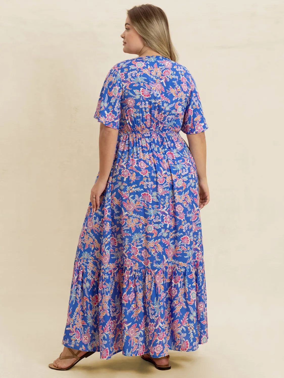 Plus Size Ruched Printed Short Sleeve Dress