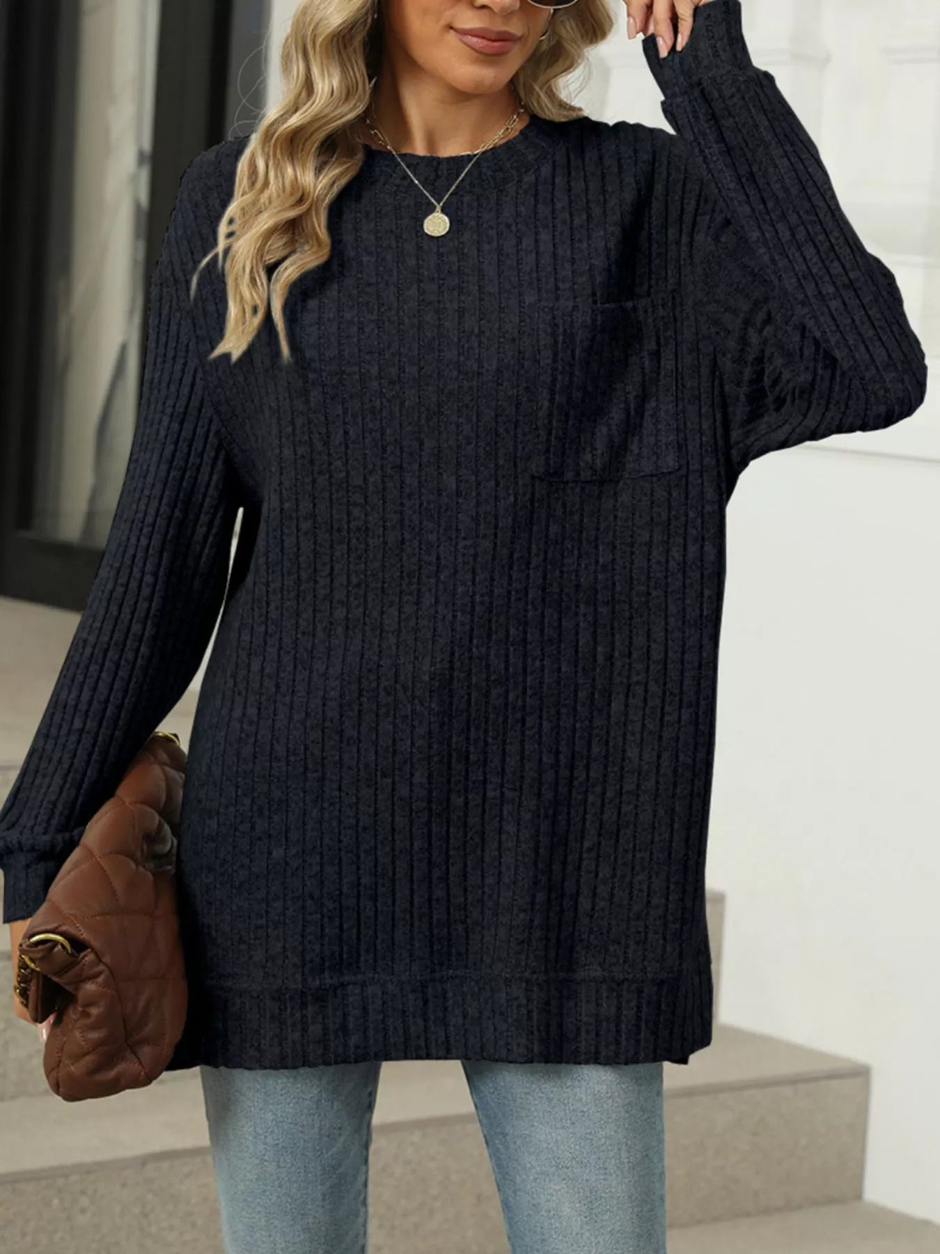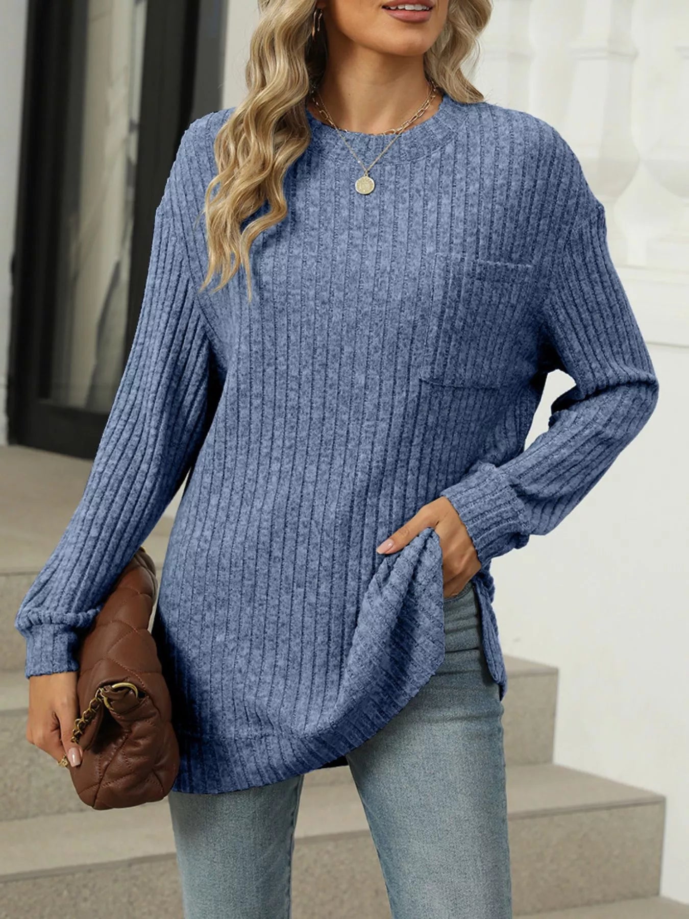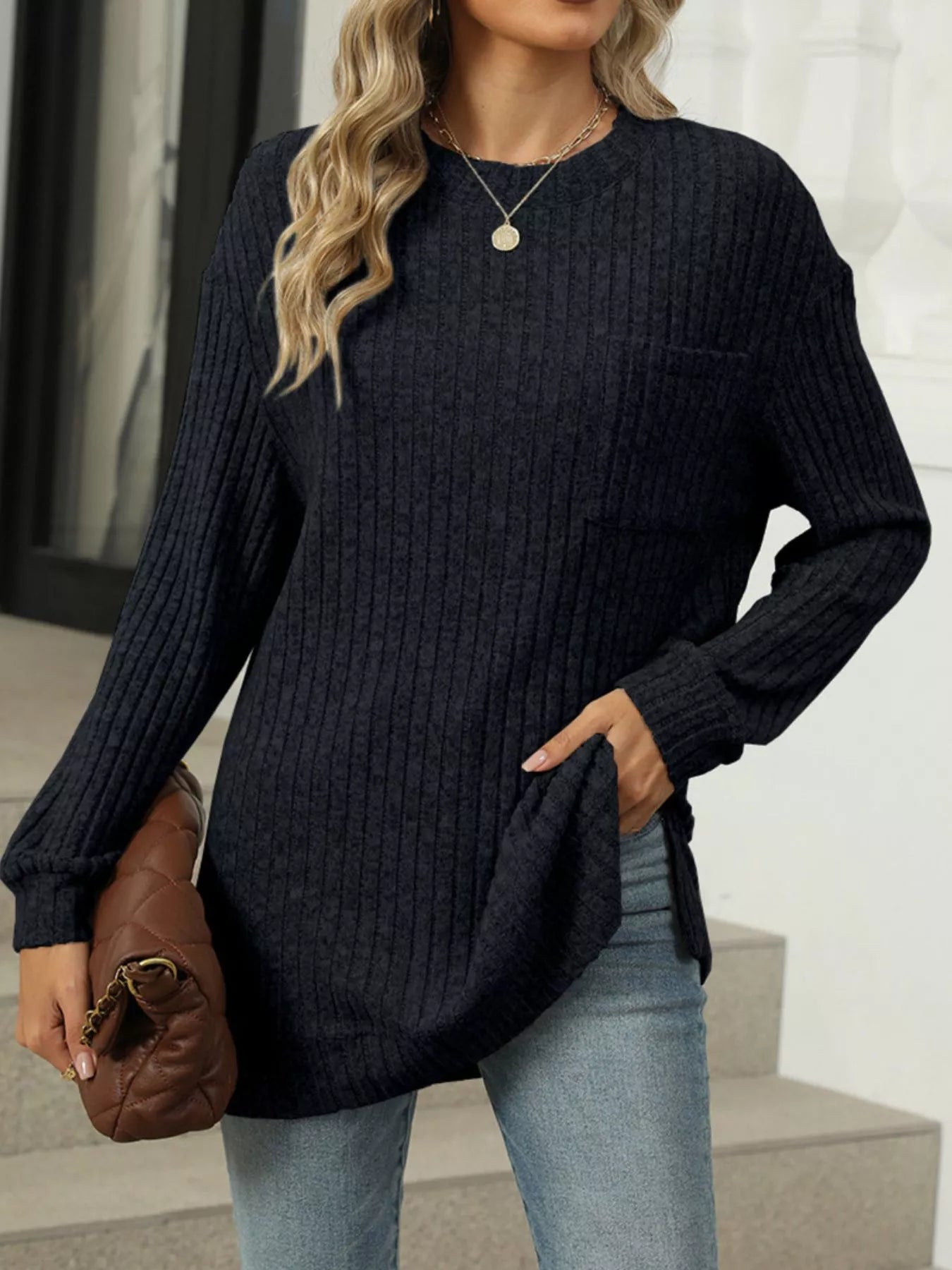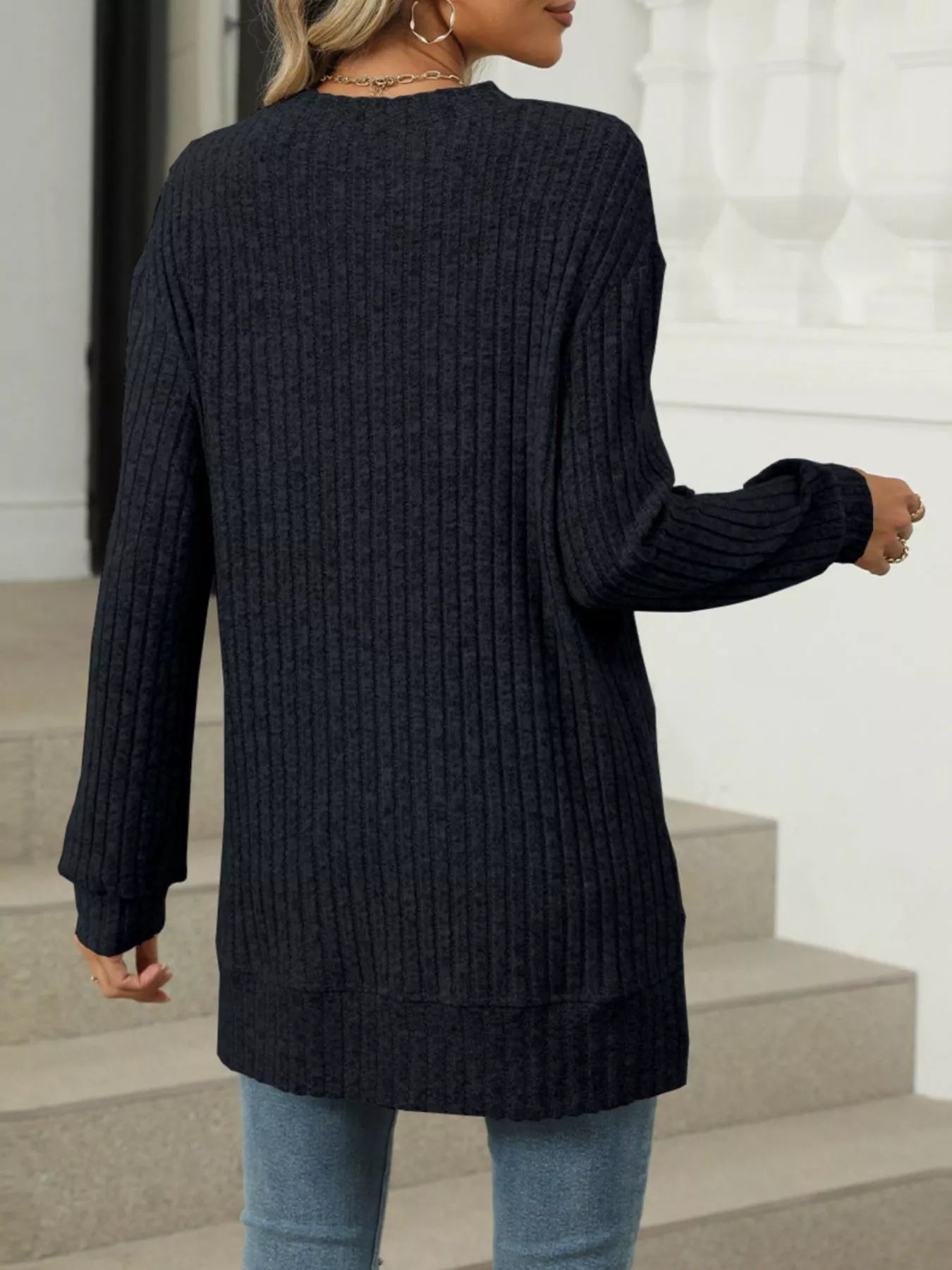 - Features: Oversized silhouette, delicately ribbed texture, elegant side slit