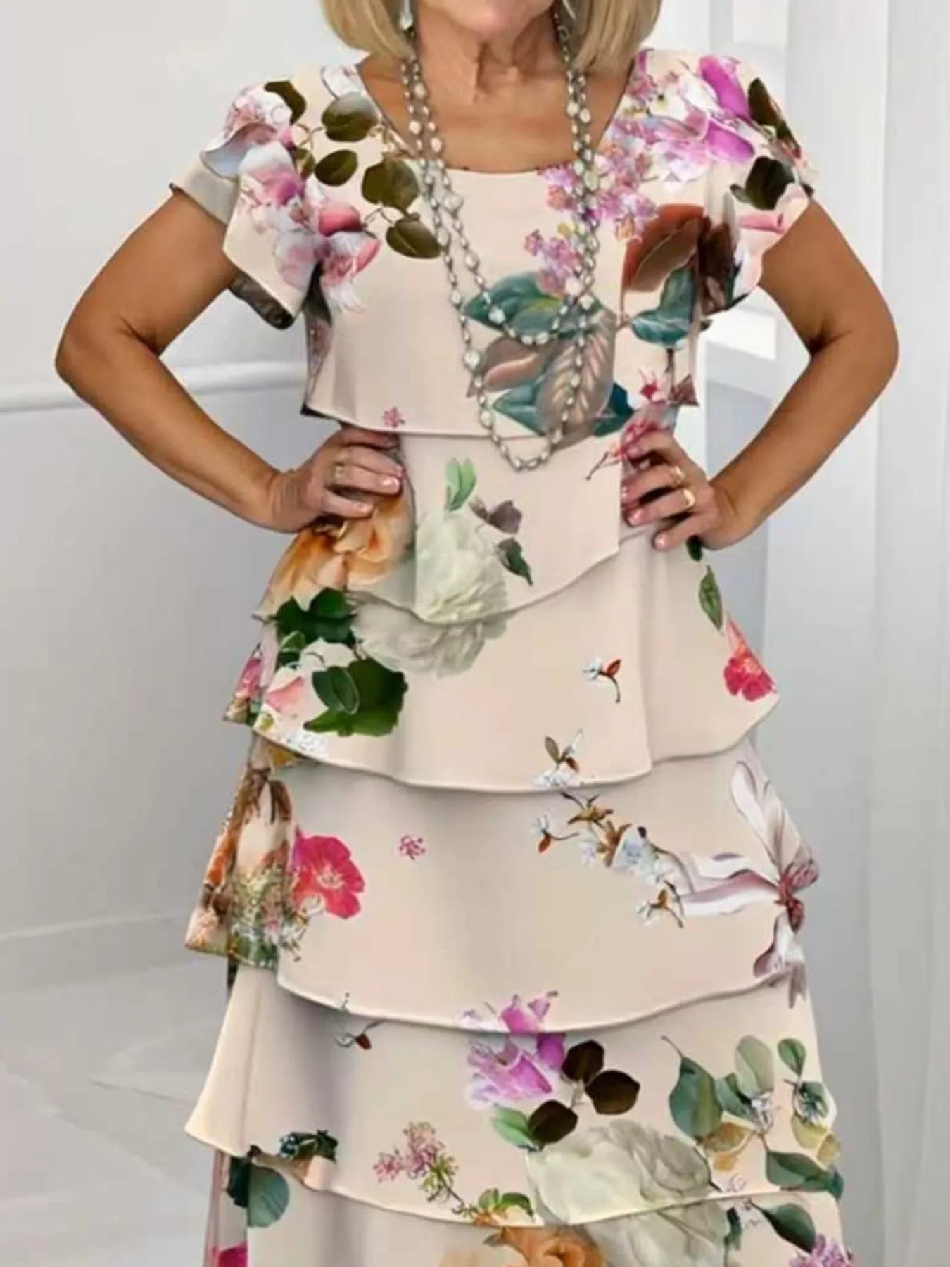 This beautifully tiered dress combines a sophisticated ruffled detail with a fluid, layered structure that enhances your silhouette with graceful movement. Designed without stretch, the fabric maintains its shape while gently skimming your curves, creating an elegant flow that feels light and comfortable throughout your day.