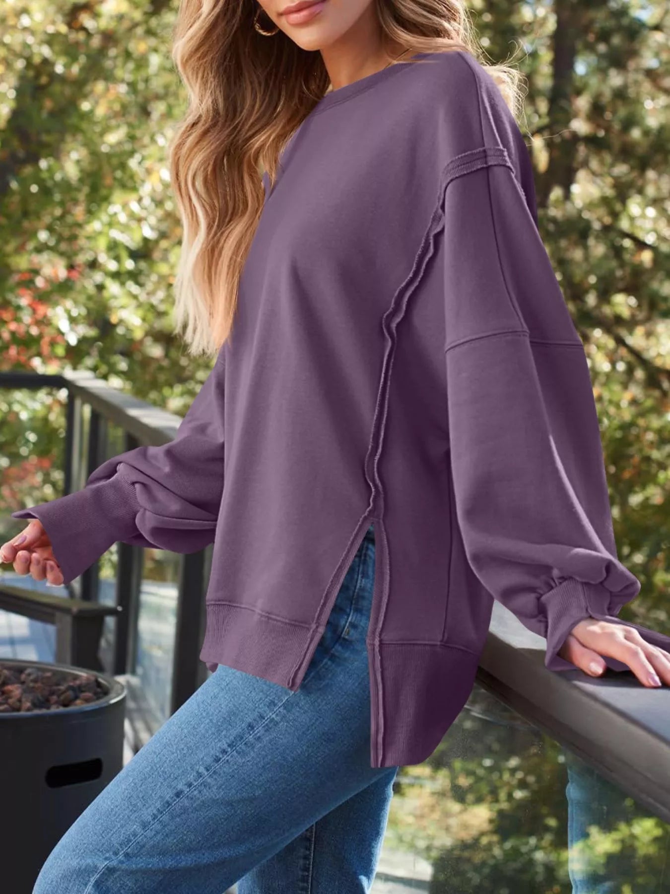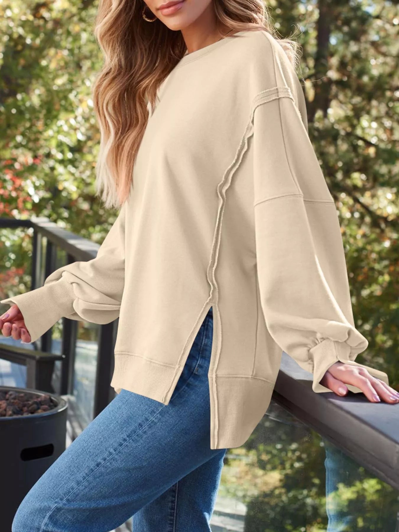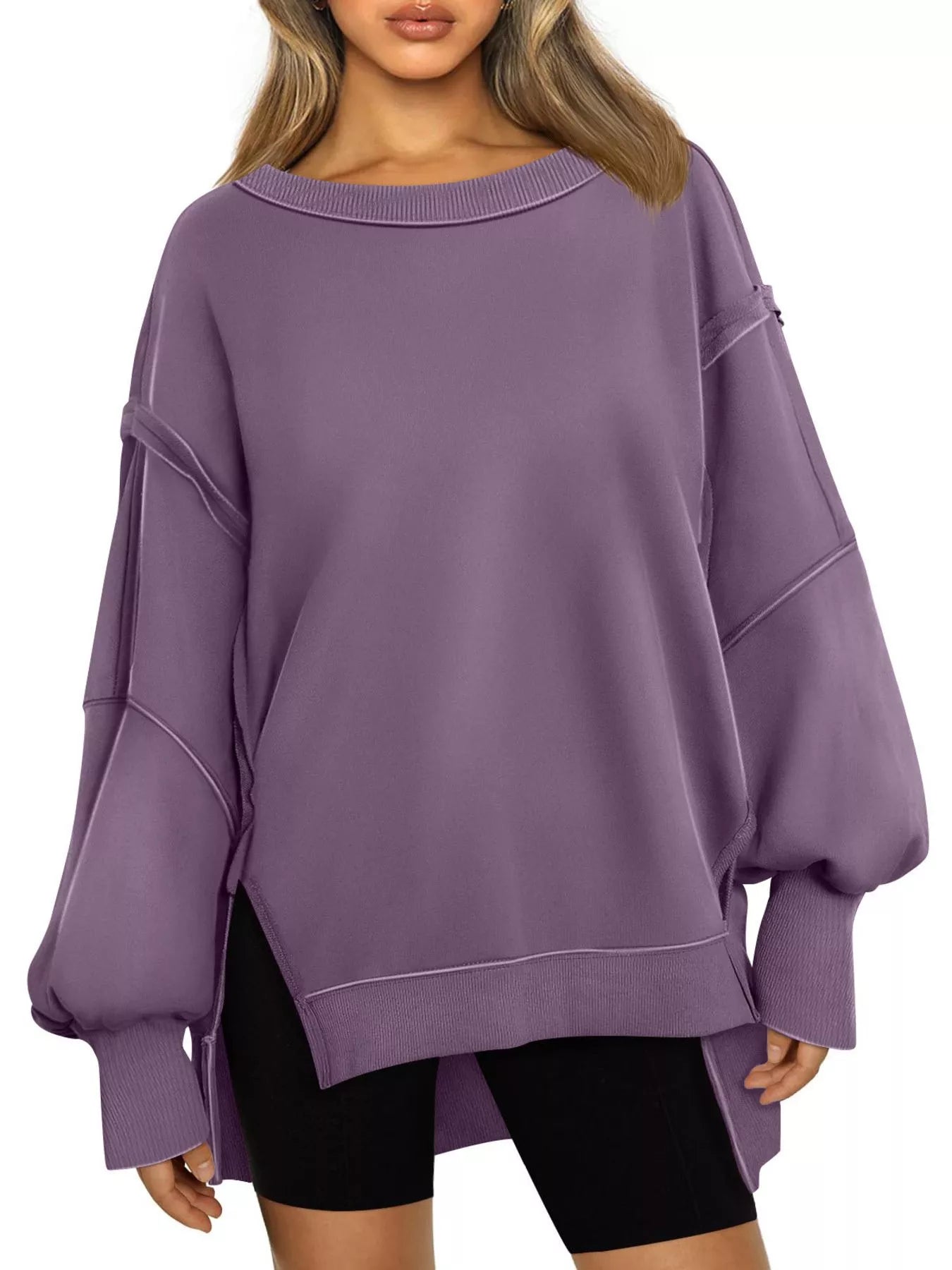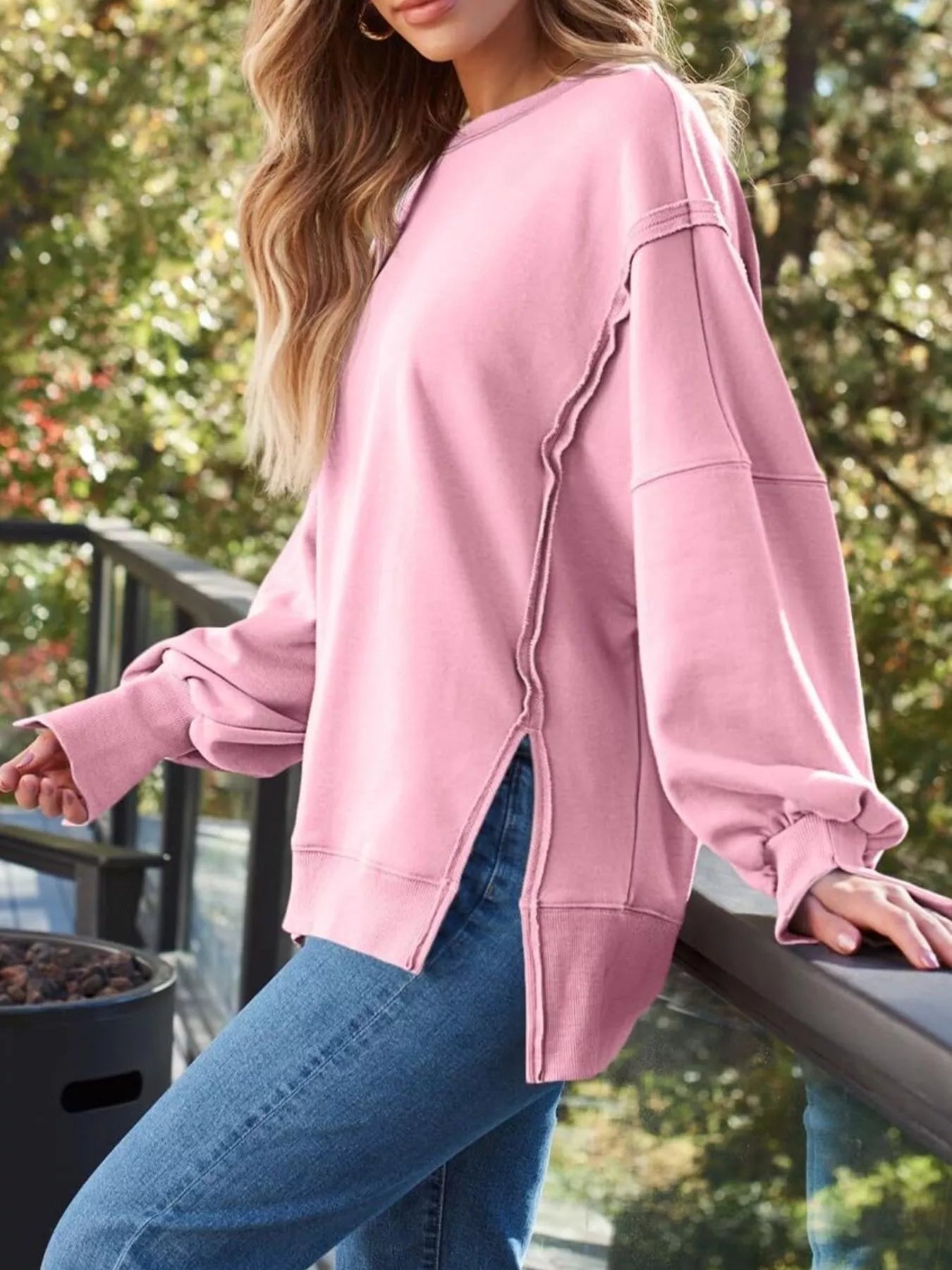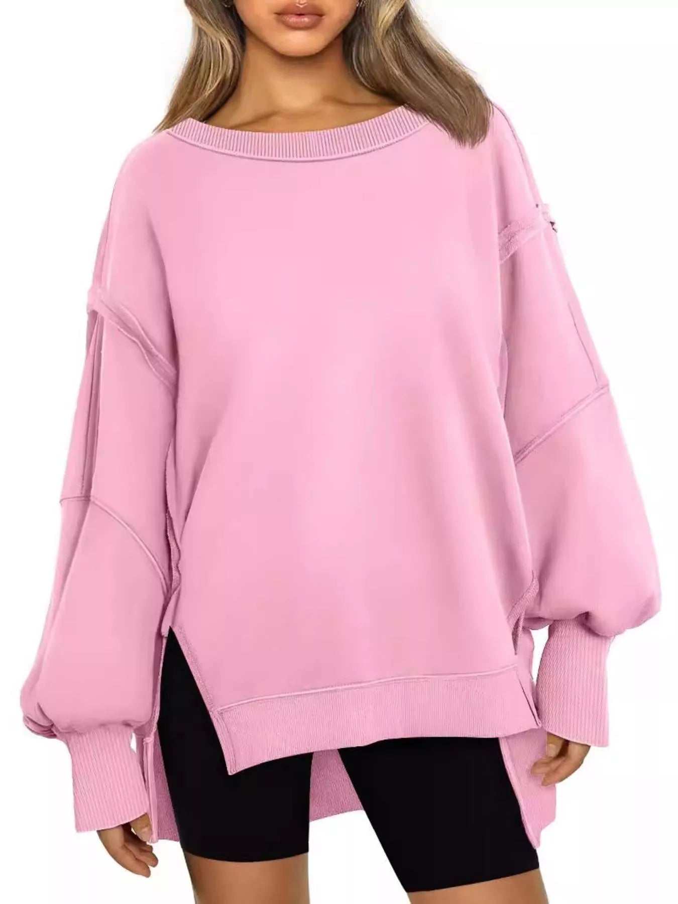 Side Slit Long Sleeve Oversized Sweatshirt
