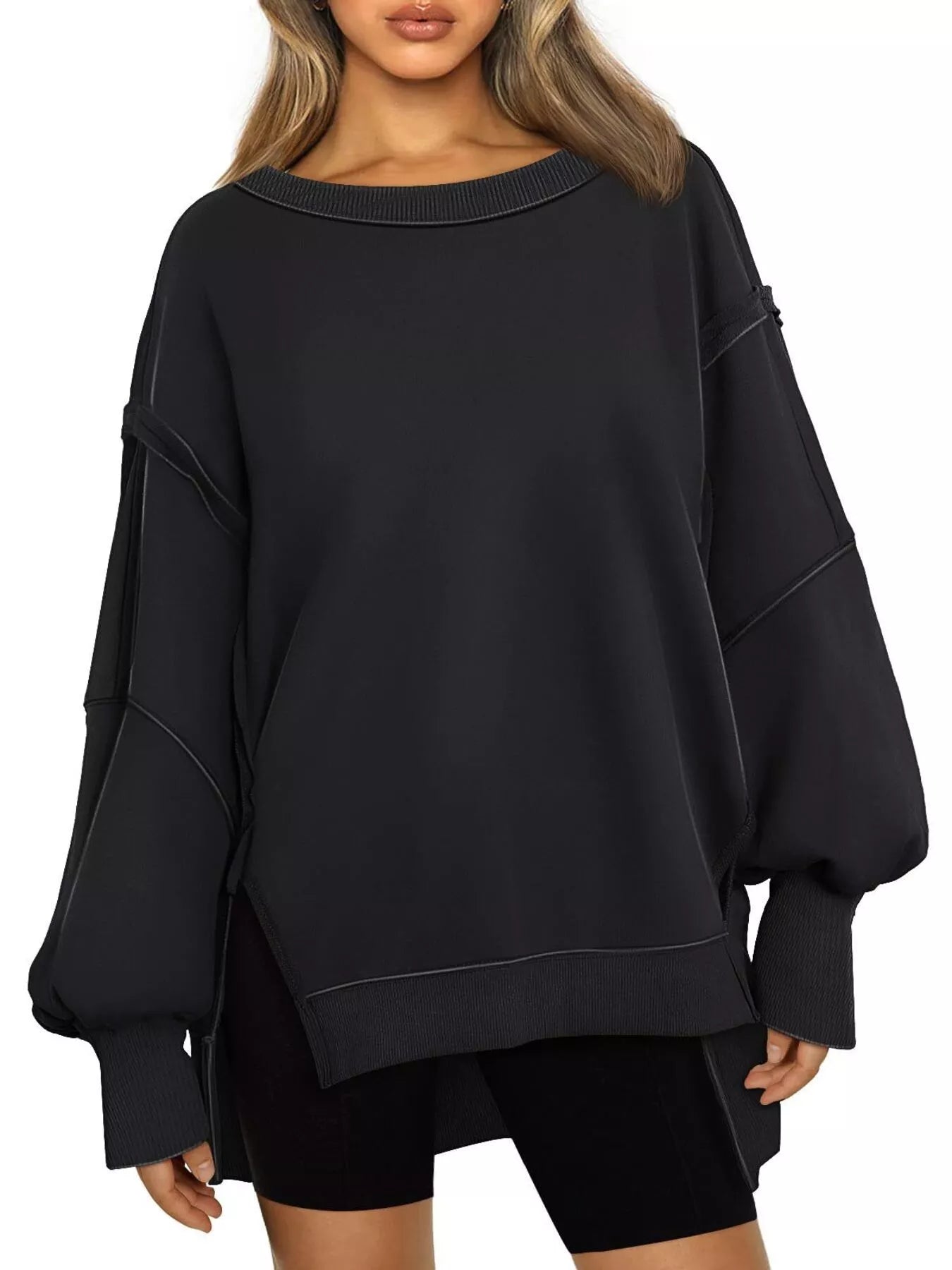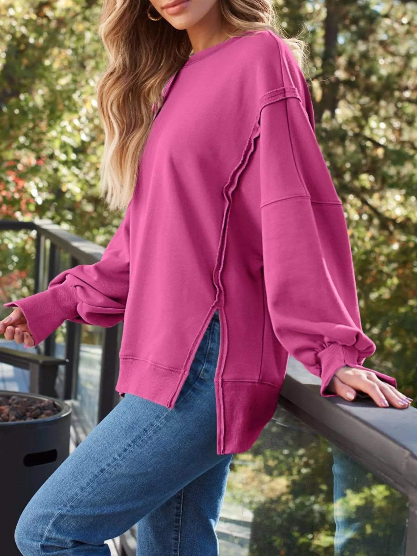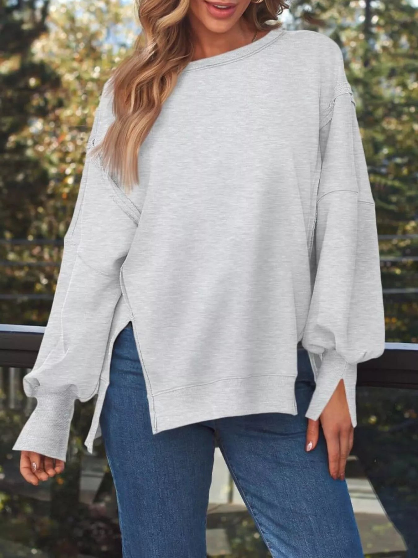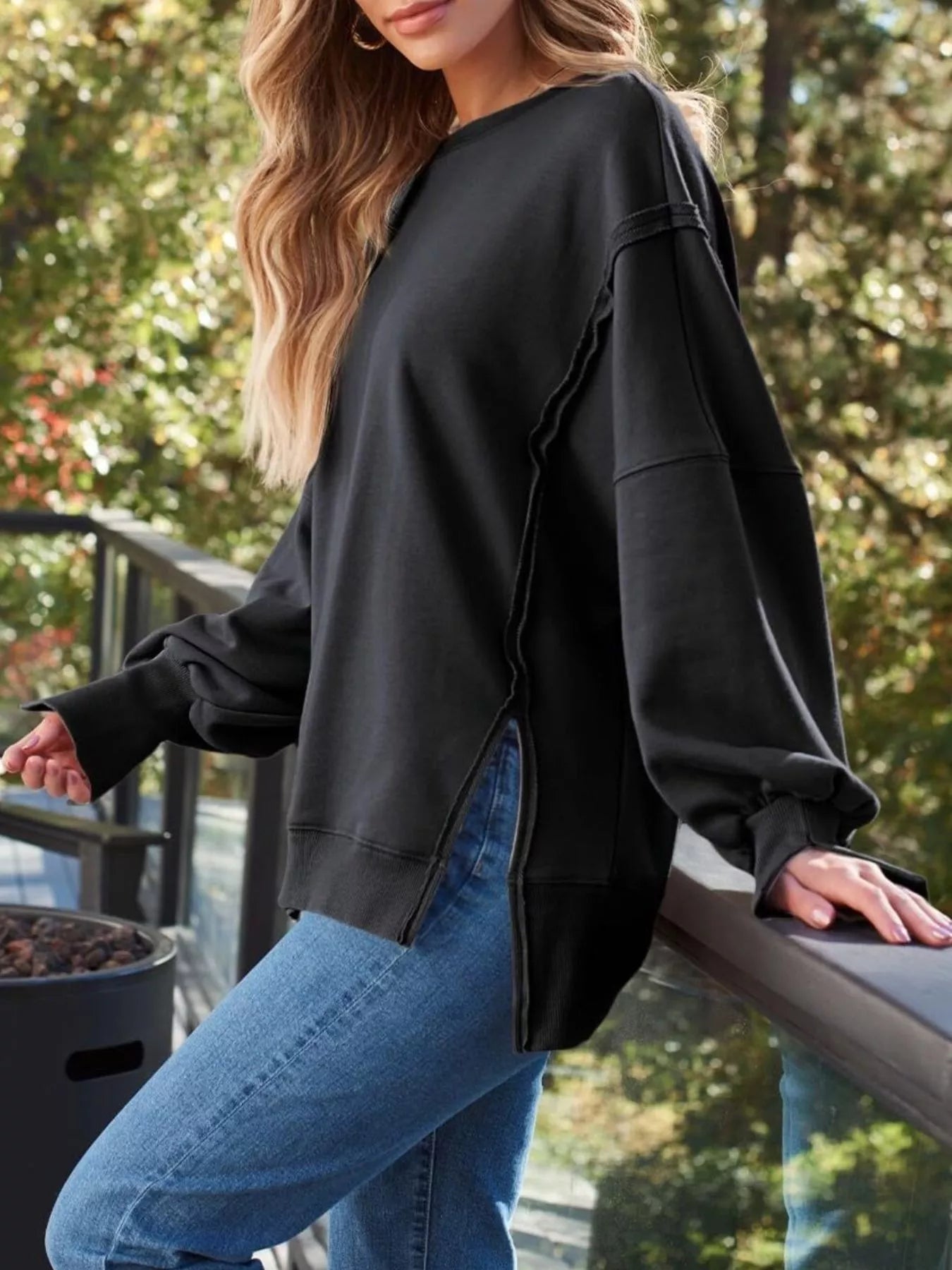 Side Slit Long Sleeve Oversized Sweatshirt