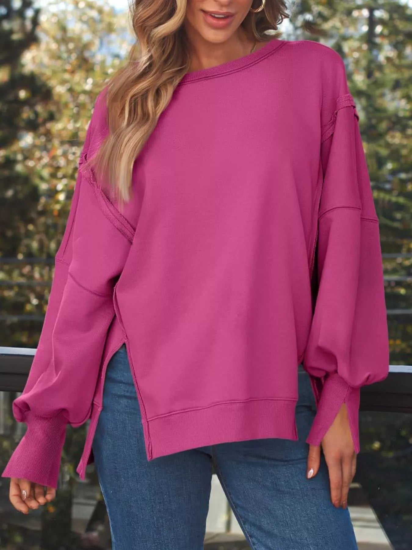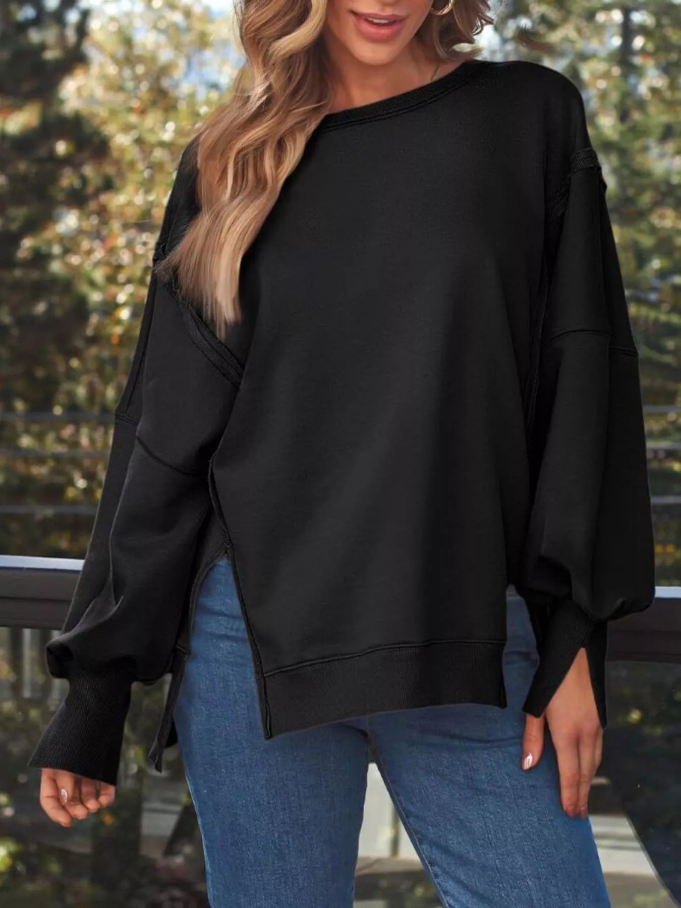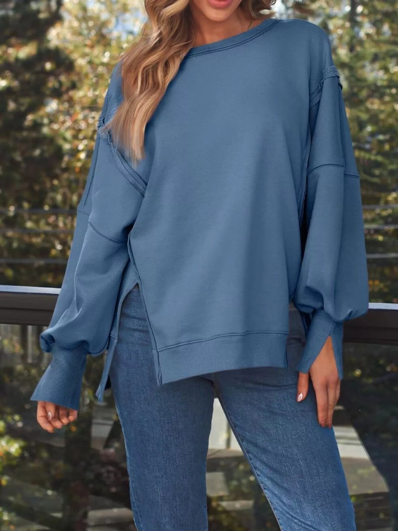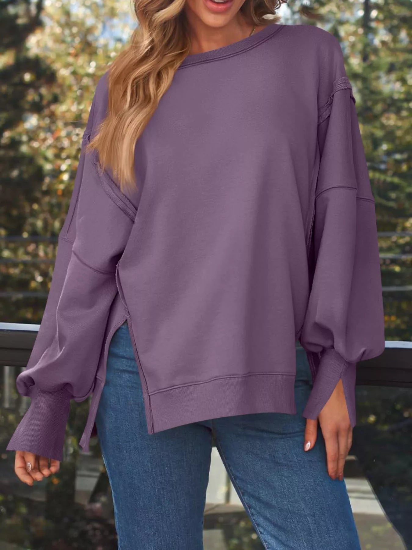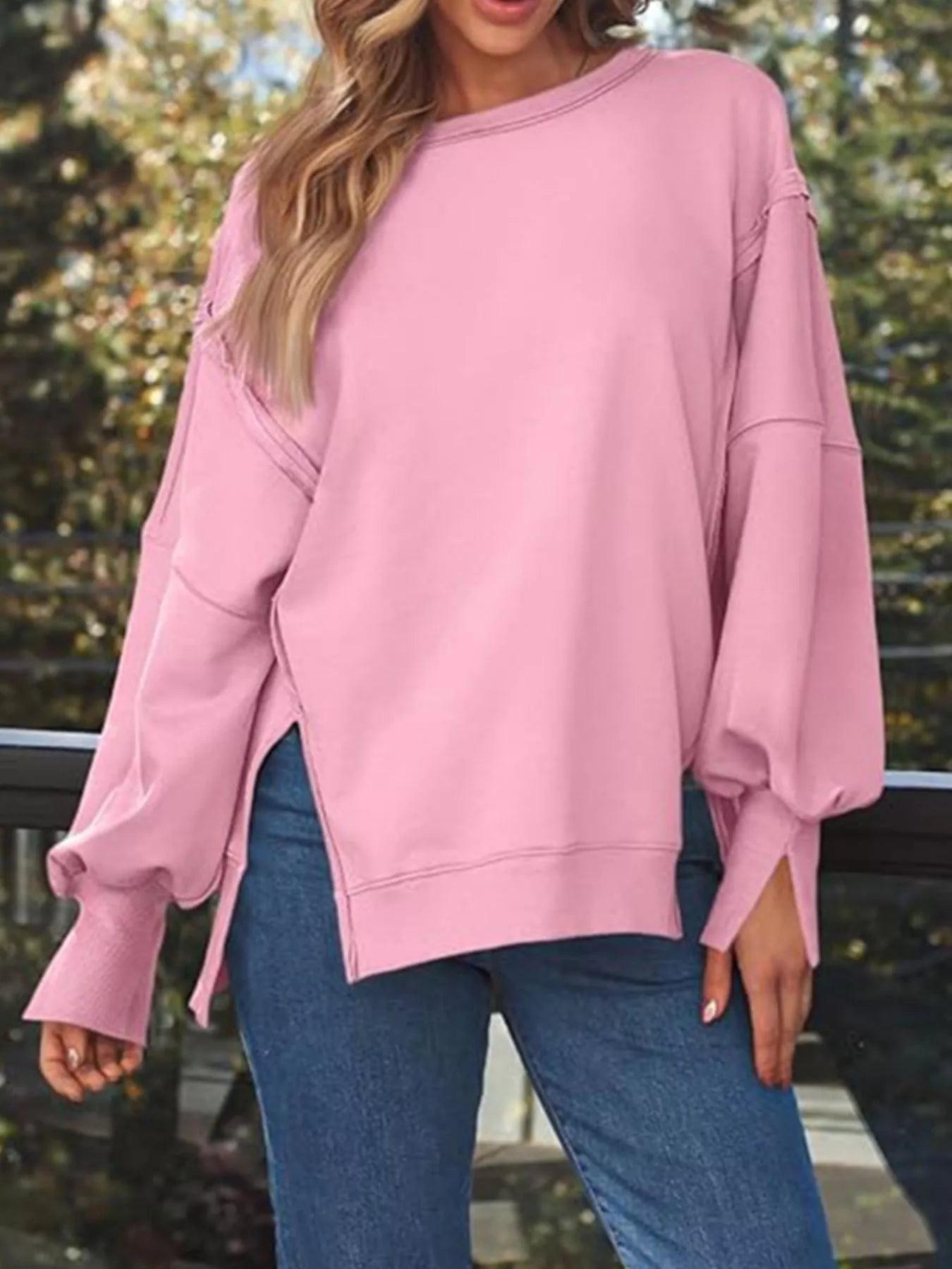 Side Slit Long Sleeve Oversized Sweatshirt