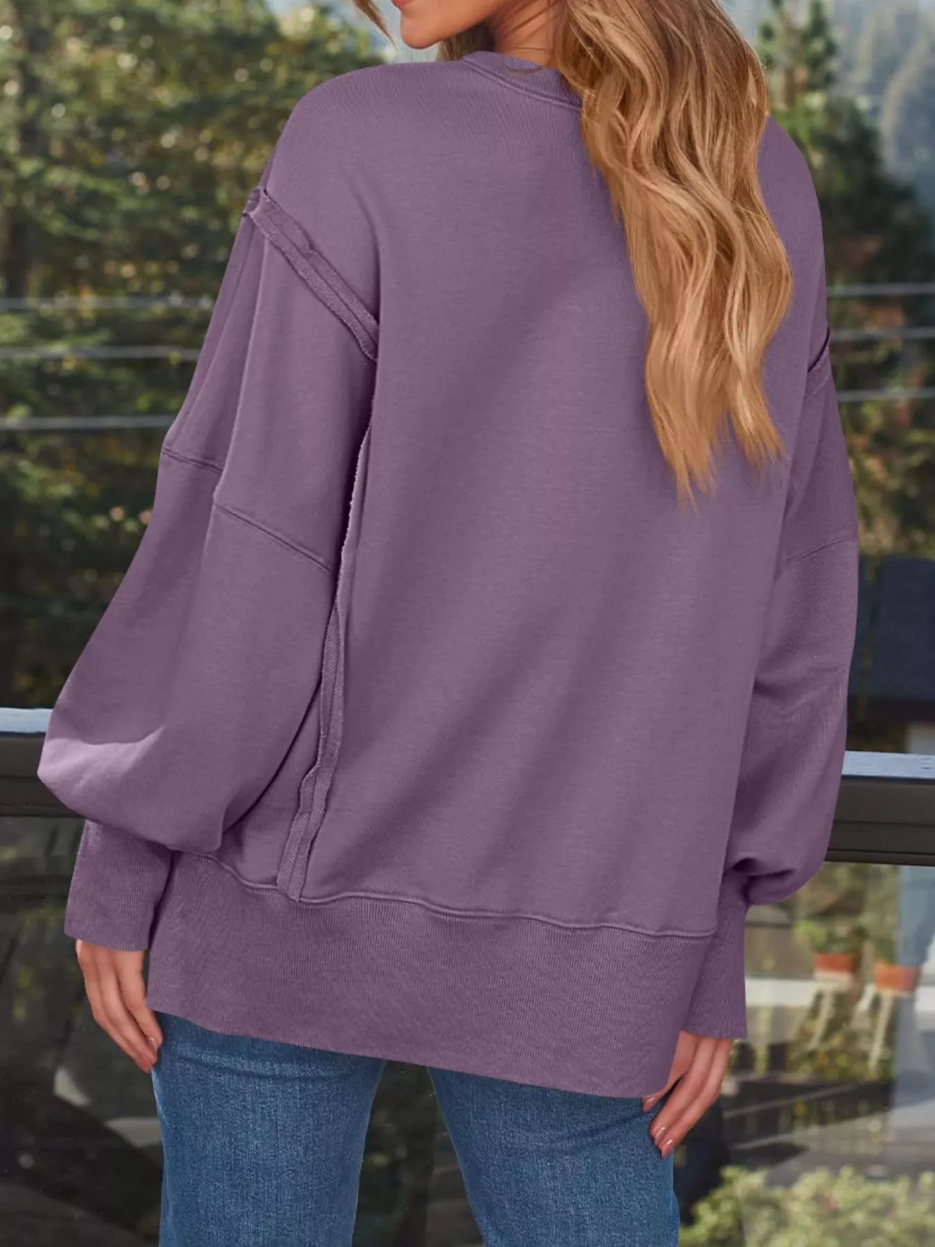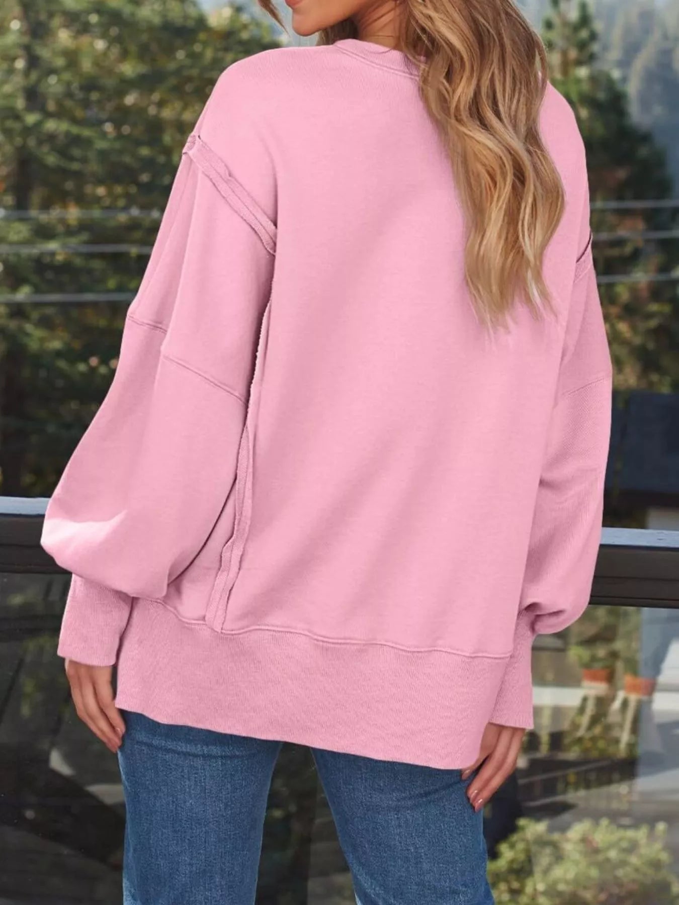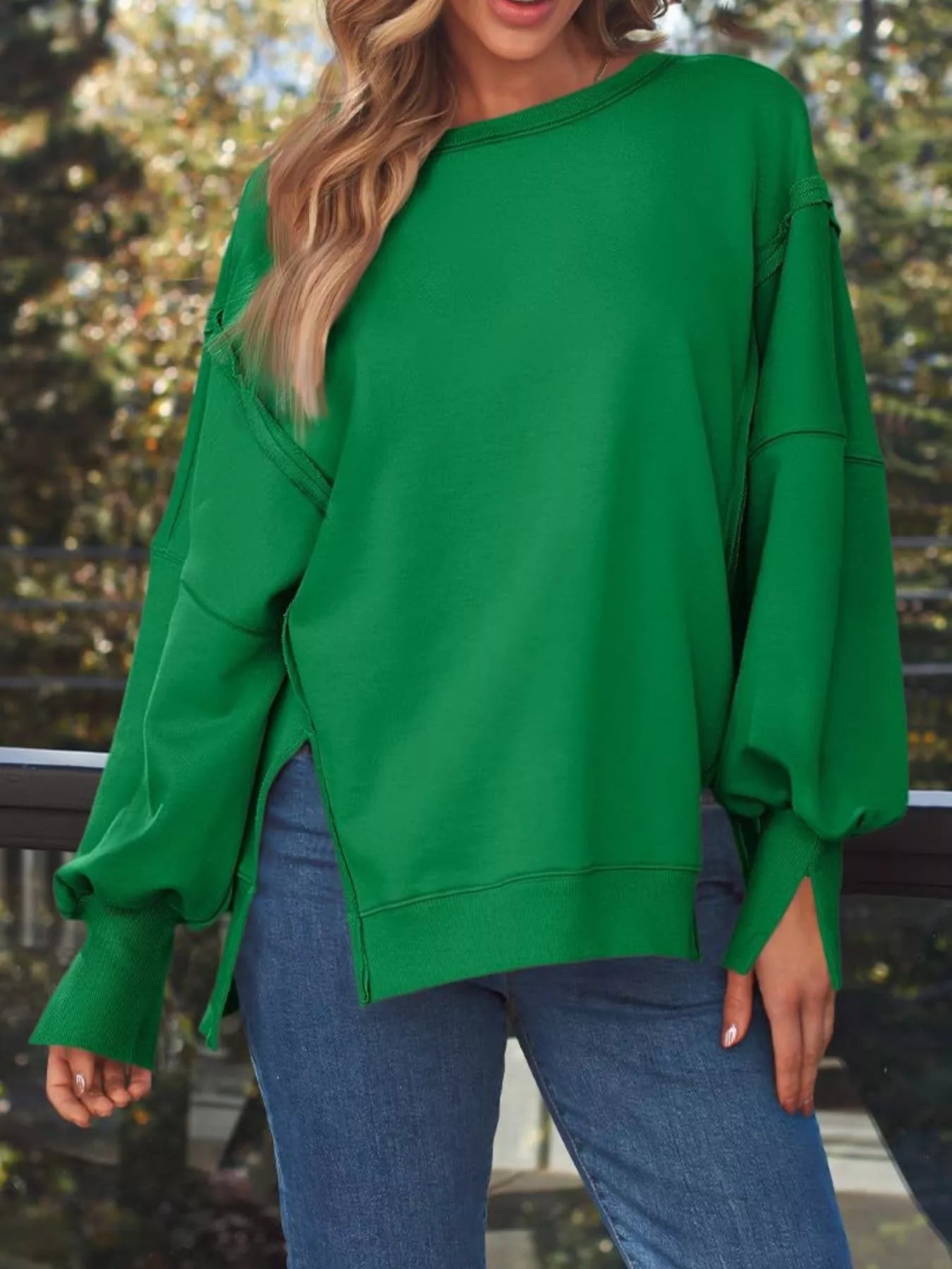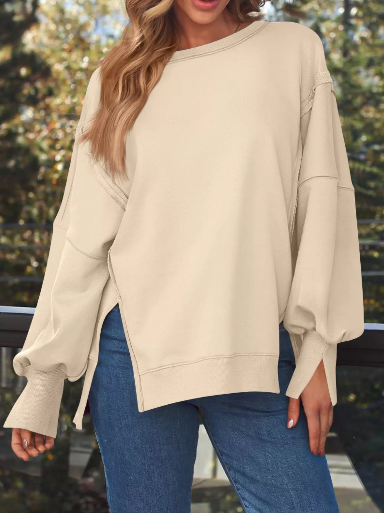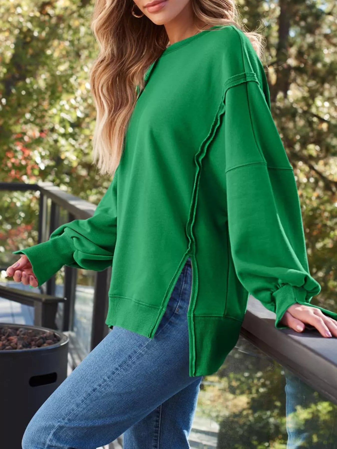 Side Slit Long Sleeve Oversized Sweatshirt