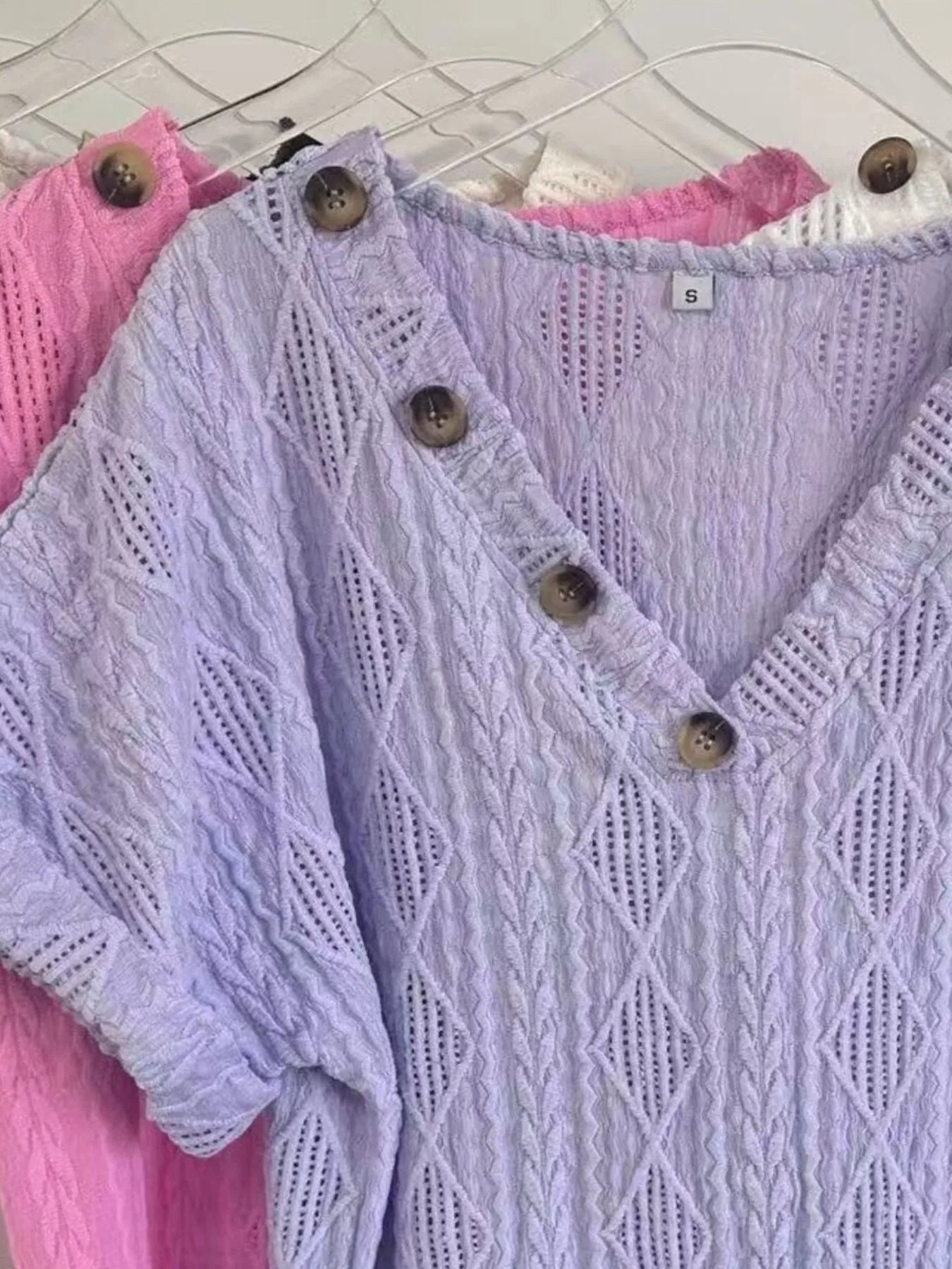 - Features: Buttoned detailing paired with delicate openwork for a refined, textural appeal