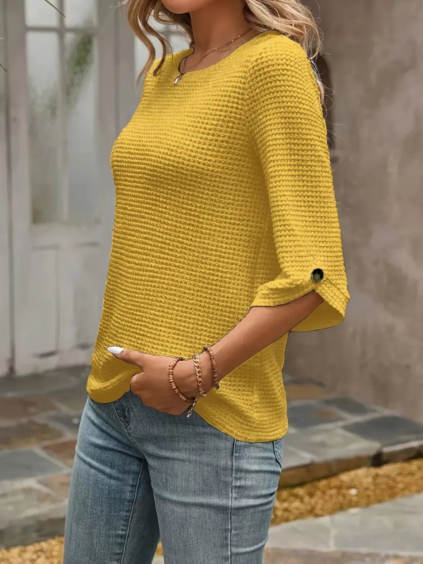 Textured Waffle Knit Three-Quarter Sleeve T-Shirt